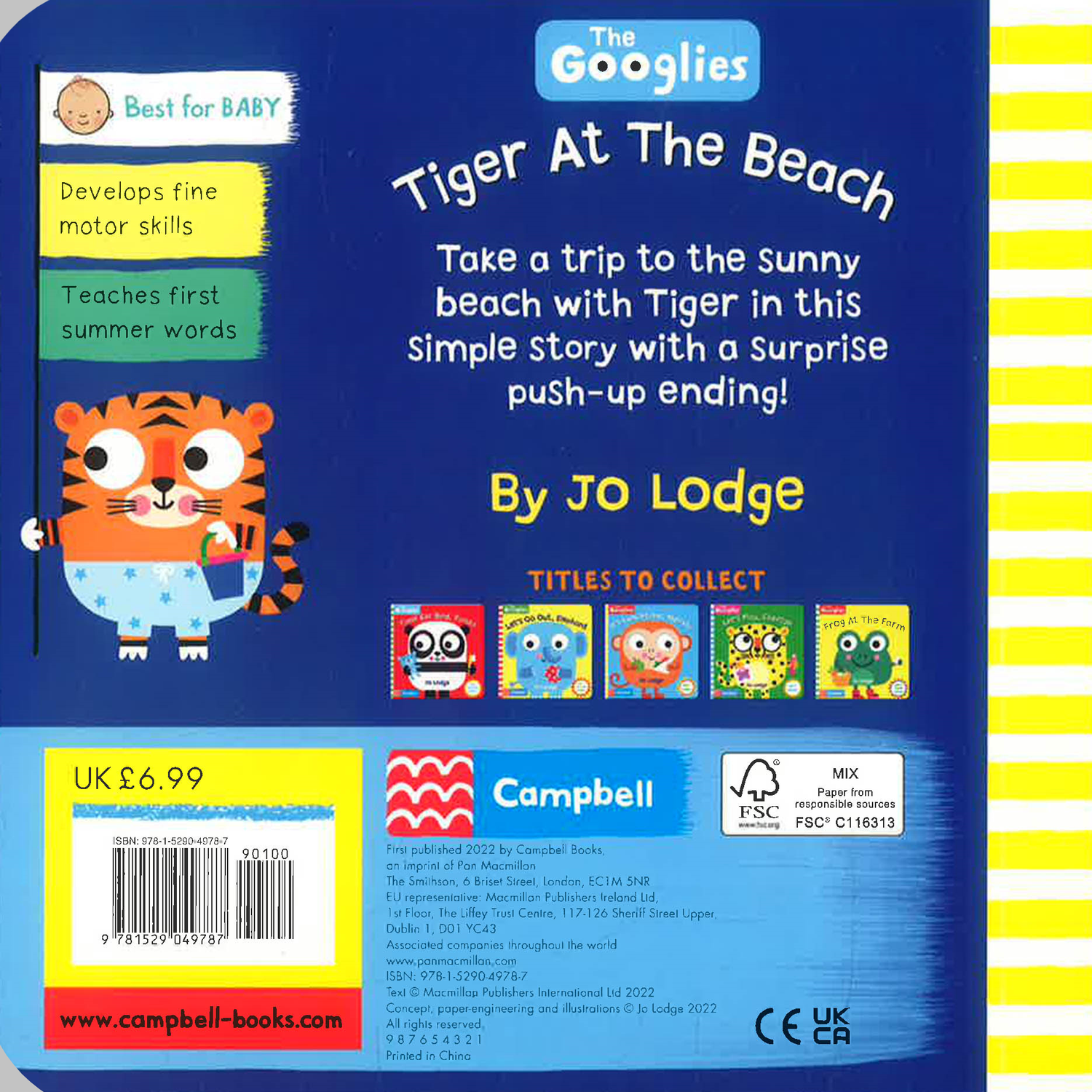 Meet The Googlies by Jo Lodge! In Tiger At The Beach, children will learn their first summer holiday words!