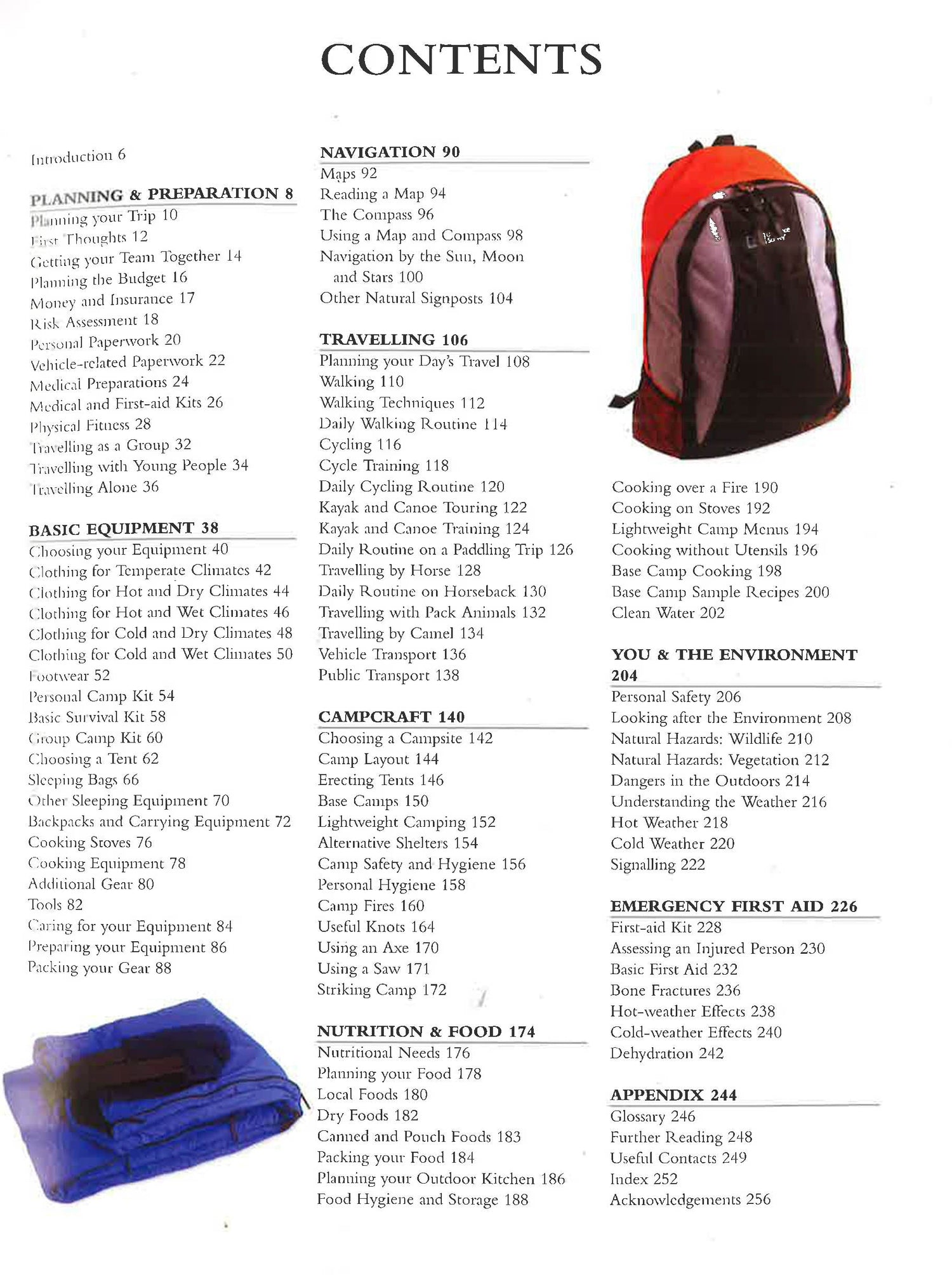 This title helps you experience the great outdoors in comfort and safety, from planning a trip to map-reading and setting up camp. It is a comprehensive reference manual covering the knowledge and skills needed to live and travel outdoors. It offers authoritative advice on practicalities, including clothing and equipment, how to use a map and compass, and how to choose a campsite, put up tents and build fires. It includes information on walking, cycling, touring in a kayak or canoe, touring on horseback, and using pack animals. Outdoor pursuits can mean anything from a day's gentle walking or mountain biking to a camping weekend, a trek through the jungle, or a tour in a kayak lasting several weeks. This book describes the kit needed for comfort and safety, including clothing and footwear, tents, sleeping bags, backpacks and cooking equipment. There is information on using a map and compass correctly, how to set up a tent and build a camp fire, and coping with hazards such as dangerous wildlife and unpredictable weather. Packed with expert advice and illustrated with over 800 photographs, the book makes essential reading for anyone planning an adventure in the great outdoors.