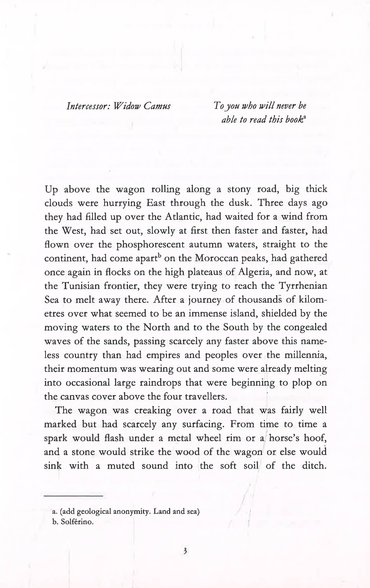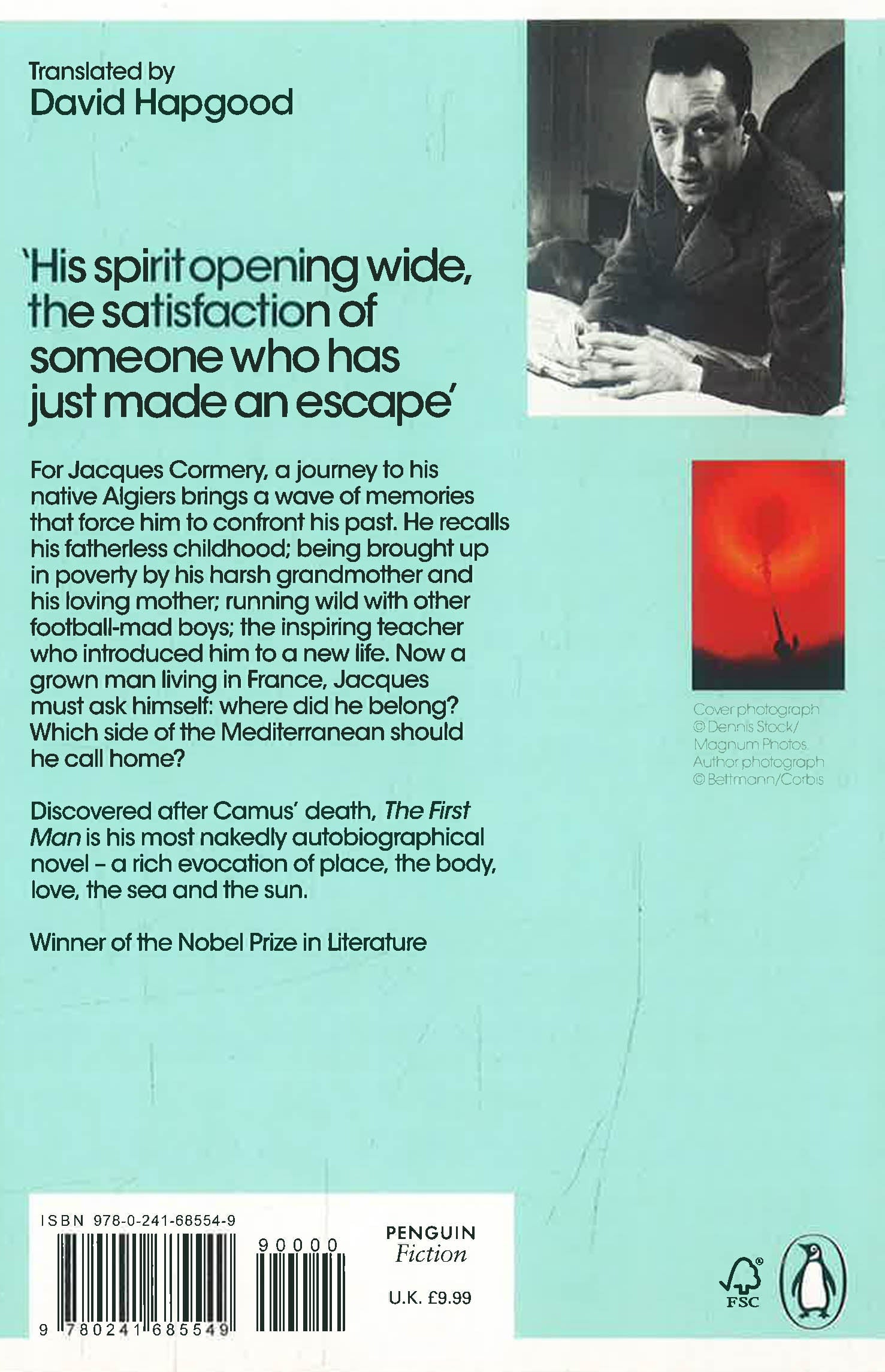 The unfinished manuscript of The First Man was discovered in the wreckage of car accident in which Camus died in 1960. Although it was not published for over thirty years, it was an instant bestseller when it finally appeared in 1994. The 'first man' is Jacques Cormery, whose poverty-stricken childhood in Algiers is made bearable by his love for his silent and illiterate mother, and by the teacher who transforms his view of the world.