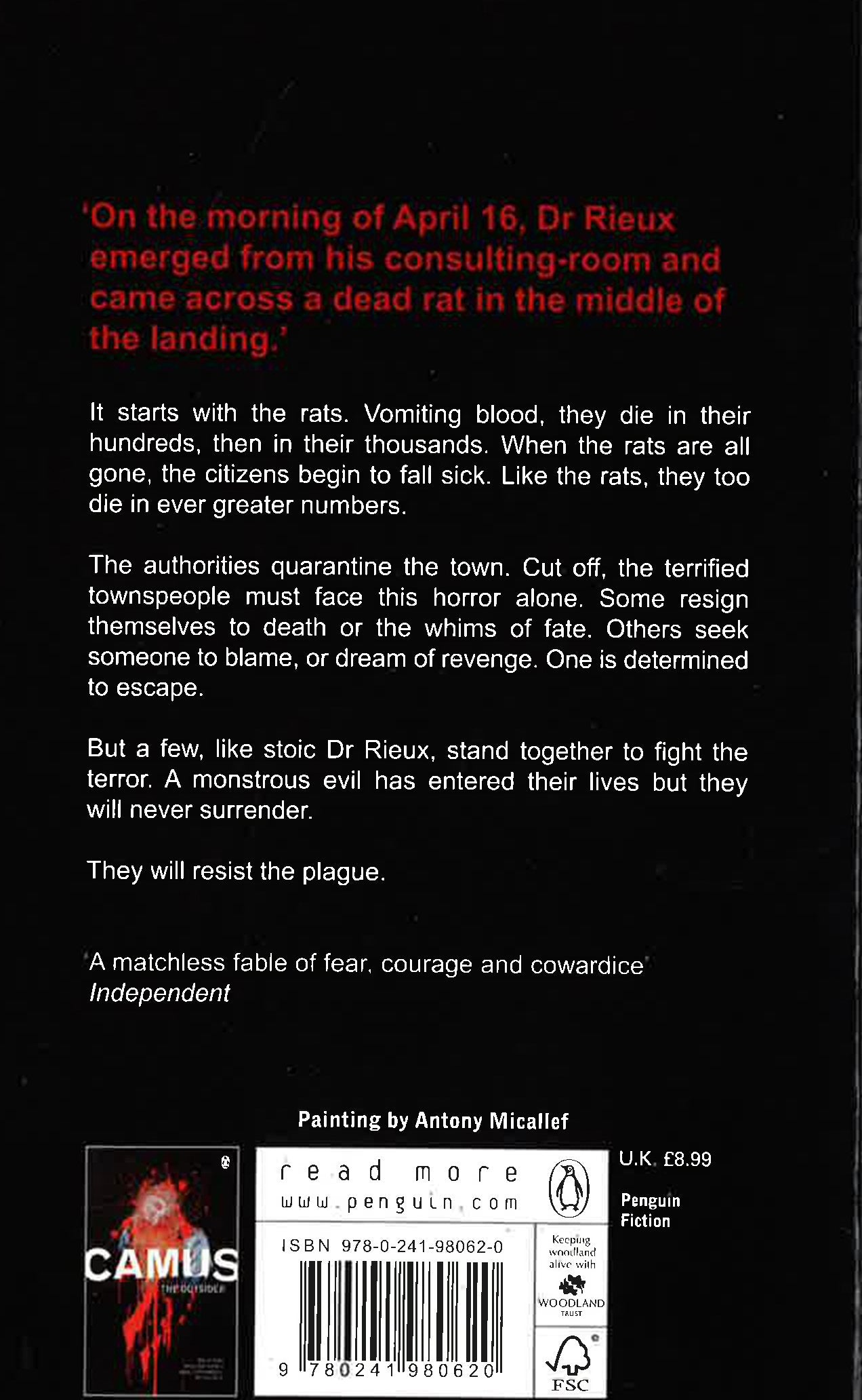 The Plague is Albert Camus's world-renowned fable of fear and courage The townspeople of Oran are in the grip of a deadly plague, which condemns its victims to a swift and horrifying death. Fear, isolation and claustrophobia follow as they are forced into quarantine. Each person responds in their own way to the lethal disease: some resign themselves to fate, some seek blame, and a few, like Dr Rieux, resist the terror. An immediate triumph when it was published in 1947, The Plague is in part an allegory of France's suffering under the Nazi occupation, and a story of bravery and determination against the precariousness of human existence. 'A matchless fable of fear, courage and cowardice' Independent 'Magnificent'The Times Albert Camus was born in Algeria in 1913. He studied philosophy in Algiers and then worked in Paris as a journalist. He was one of the intellectual leaders of the Resistance movement and, after the War, established his international reputation as a writer. His books include The Plague, The Just and The Fall, and he won the Nobel Prize for Literature in 1957. Camus was killed in a road accident in 1960.