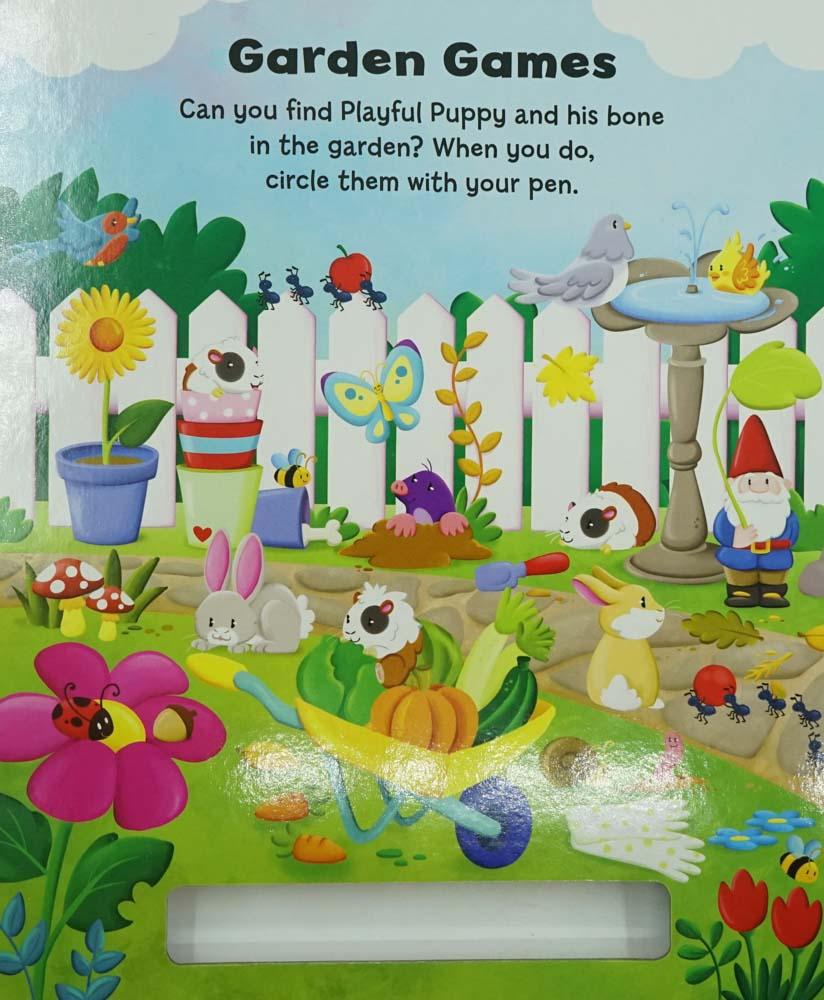 Playful Puppy is playing hide-and-seek on the farm. Can you find her? There are lots of other fun things to find, too, plus numbers and colours to learn. With wipe-clean pages and a pen, children can have look-and-find fun again and again.