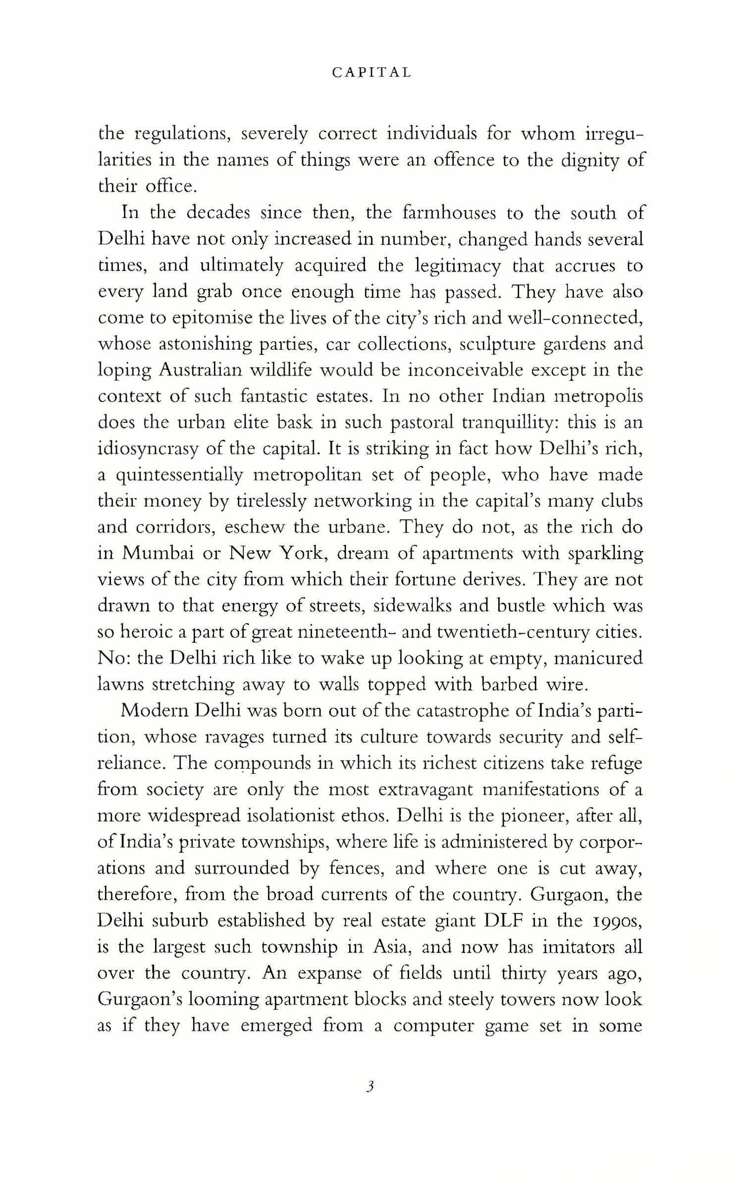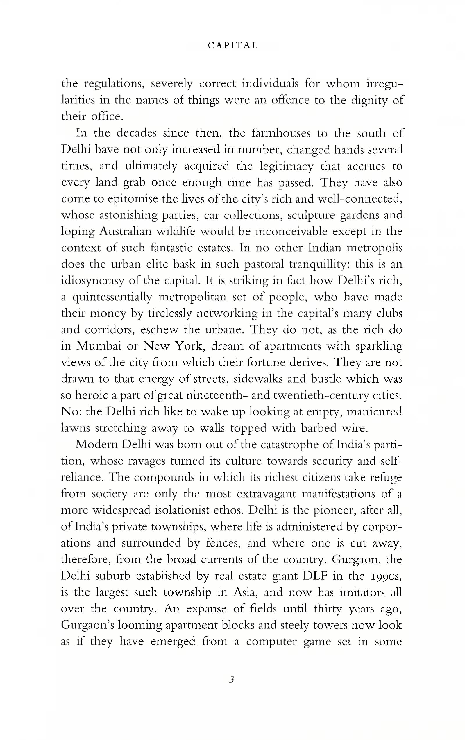 In "Capital," Commonwealth Prize winning author Rana Dasgupta examines one of the great trends of our time: the expansion of the global elite. "Capital" is an intimate portrait of the city of Delhi which bears witness to the extraordinary transmogrification of India s capital. But it also offers a glimpse of what capitalism will become in the coming, post-Western world. The story of Delhi is a parable for where we are all headed. The boom following the opening up of India s economy plunged Delhi into a tumult of destruction and creation: slums and markets were ripped down, and shopping malls and apartment blocks erupted from the ruins. Many fortunes were made, and in the glassy stores nestled among the new highways, customers paid for global luxury with bags of cash. But the transformation was stern, abrupt and fantastically unequal, and it gave rise to strange and bewildering feelings. The city brimmed with ambition and rage. Violent crimes stole the headlines. In the style of V. S. Naipaul s now classic personal journeys, Dasgupta shows us this city through the eyes of its people. With the lyricism and empathy of a novelist, Dasgupta takes us through a series of encounters with billionaires and bureaucrats, drug dealers and metal traders, slum dwellers and psychoanalysts which plunge us into Delhi s intoxicating, and sometimes terrifying, story of capitalist transformation. Together these people comprise a generation on the cusp, like that of Gilded Age New York: who they are, and what they want, says a tremendous amount about what the world will look like in the rest of the twenty-first century. Interweaving over a century of history with his personal journey, Dasgupta presents us with the first literary portrait of one of the twenty-first century s fastest-growing megalopolises a dark and uncanny portrait that gives us insights, too, as to the nature of our own everyone s shared, global future.