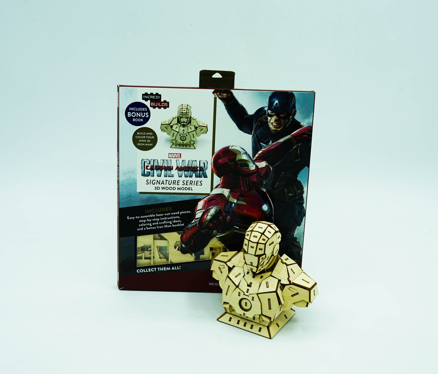 Build and color your own 3D Iron Man model!Wounded, captured, and forced to build a weapon by his enemies, billionaire industrialist Tony Stark instead created an advanced suit of armor to save his life and escape captivity. Now with a new outlook on life, Tony uses his resources and intelligence to make the world a safer, better place as Iron Man. Now fans can create a wood model of Tony Stark’s Iron Man armor with this deluxe model set. Fun and interactive, IncrediBuilds: Marvel’s Captain America: Civil War: Iron Man 3D Wood Model is the perfect gift for fans of the films.Includes:-Laser-cut, FSC-certified wood sheet with easy-to-assemble pieces-Step-by-step instructions-Coloring and crafting ideas and a bookletSkill Level: Expert