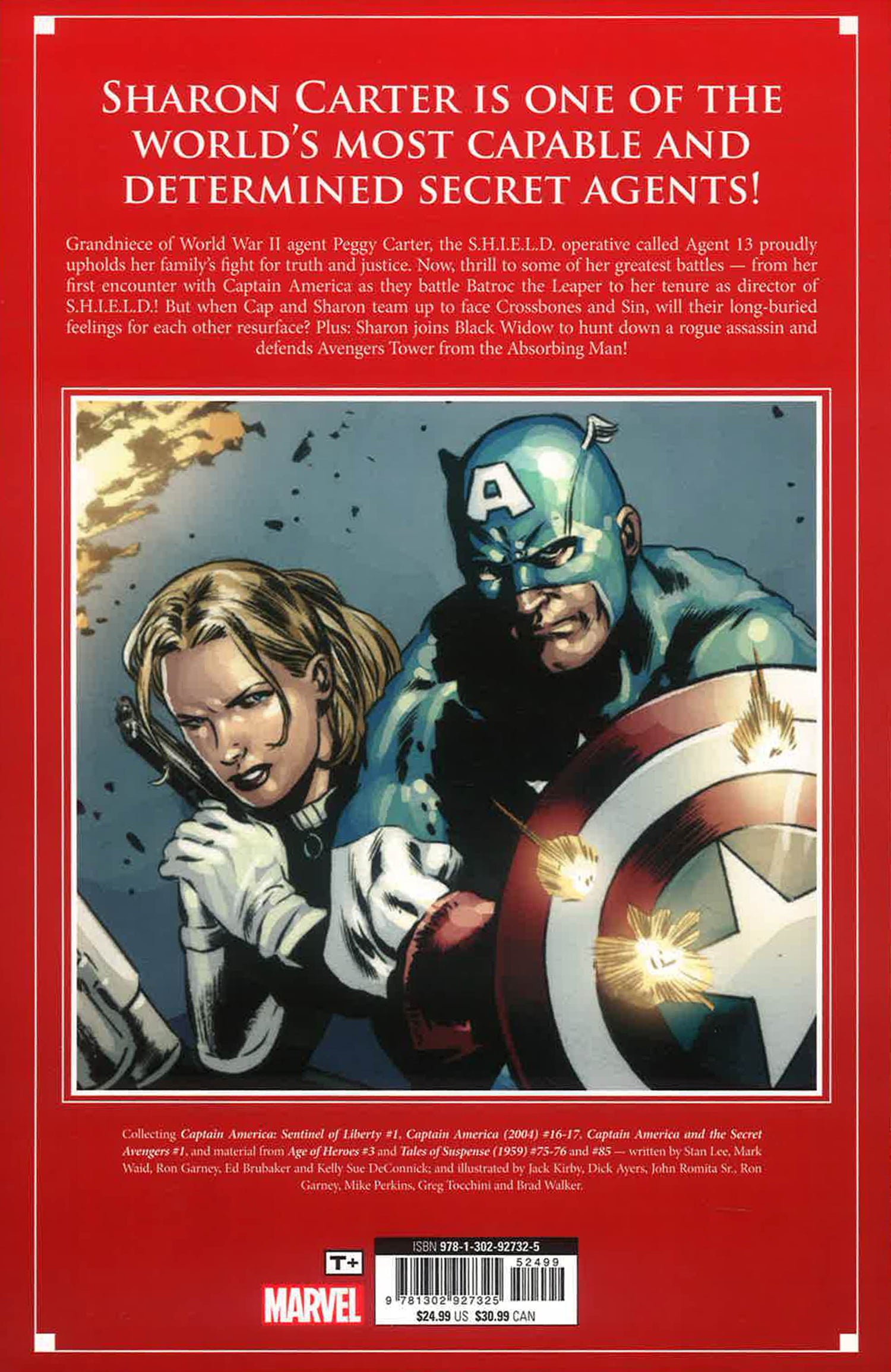 Collects Captain America: Sentinel of Liberty (1998) #1; Captain America (2004) 16-17; Captain America and the Secret Avengers (2011) #1; material from Tales of Suspense (1959) #75-76, 85; Age of Heroes (2010) #3. Sharon Carter is one of the world's most capable and determined secret agents! Grandniece of World War II agent Peggy Carter, the S.H.I.E.L.D. operative called Agent 13 proudly upholds her family's fight for truth and justice. Now, thrill to some of her greatest battles! From her first encounter with Captain America as they battle Batroc the Leaper, to Sharon's tenure as director of S.H.I.E.L.D.! But when Cap and Sharon team up to face down Crossbones and Sin, will their long-buried feelings for each other resurface? Plus: Sharon joins the Black Widow to hunt down a rogue assassin-and defends Avengers Tower from the Absorbing Man!