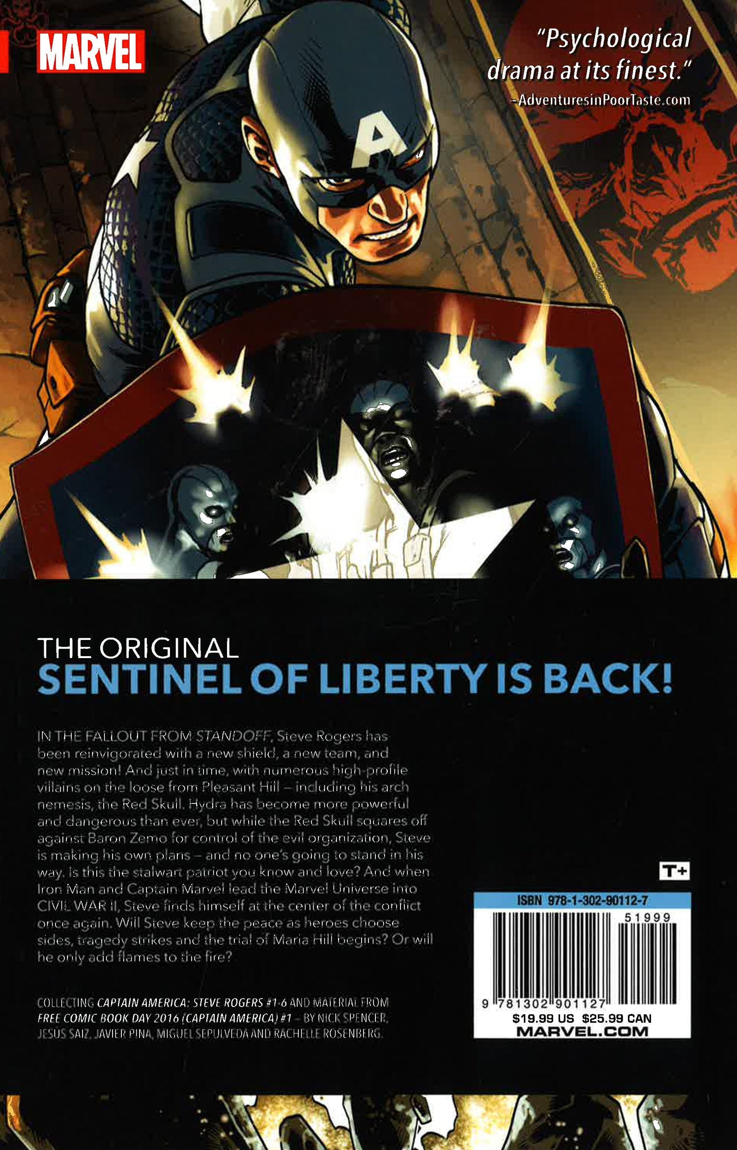 He's back! The original Sentinel of Liberty returns, with a new shield, a new team, and a new mission! And he's not the only one who's back! Like the saying goes-- cut off one head, two more will take its place! HAIL HYDRA! COLLECTING: Captain America: Steve Rogers 1-6, Free Comic Book Day 2016 (Captain America) 1