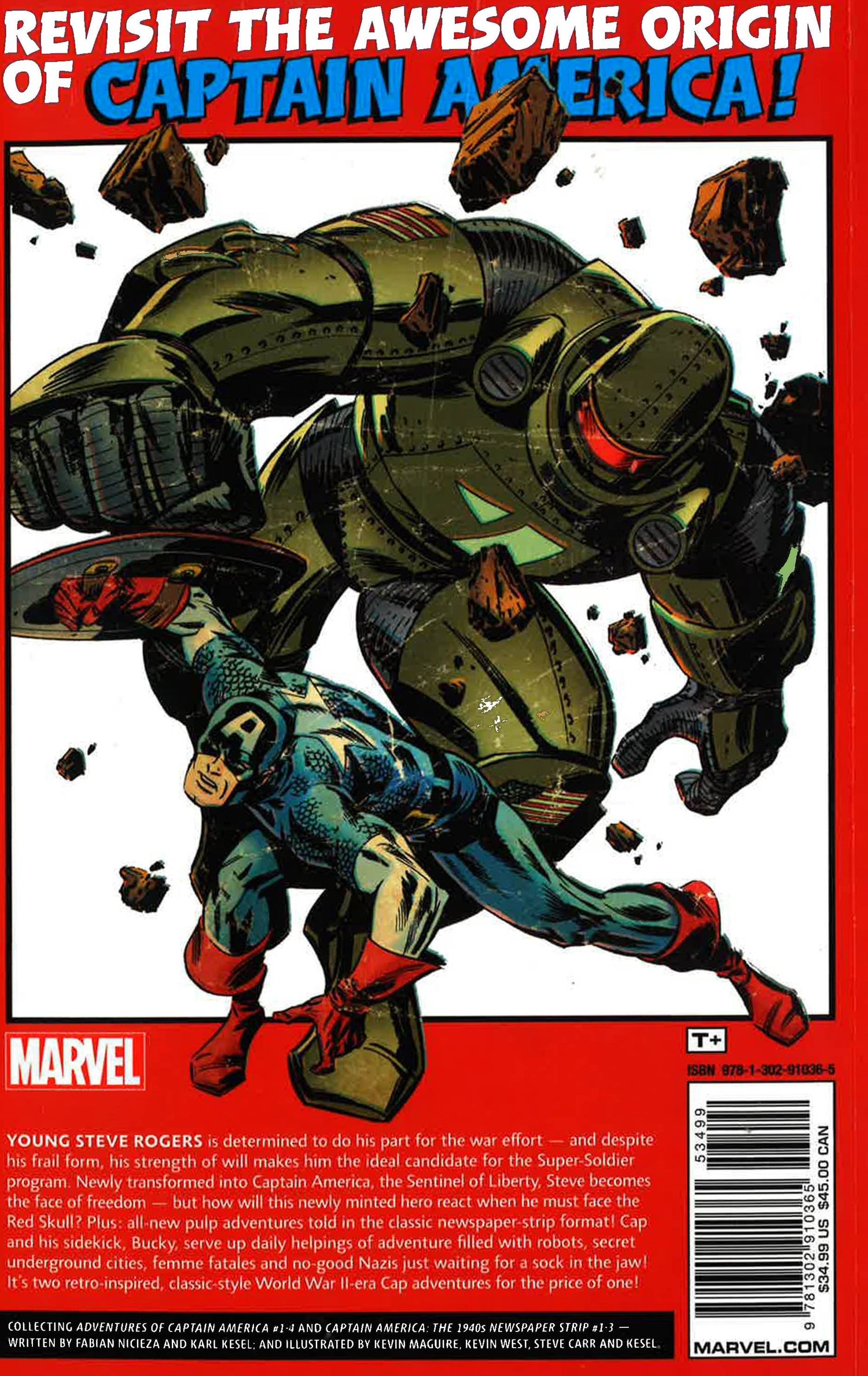 Two retro-inspired, classic-style WWII Cap adventures for the price of one! First, revisit the awesome origin of Captain America - with a twist! Young Steve Rogers is determined to do his bit for the war effort, and despite his frail form, his strength of will makes him the ideal candidate for the Super-Soldier Program. Newly transformed into Captain America, the Sentinel of Liberty, Steve becomes the face of freedom - but how will this newly minted hero react when he must face the Red Skull? Plus, all-new pulp adventures told in the classic newspaper strip format! Cap and his sidekick Bucky serve up daily helpings of adventure filled with robots, secret underground cities, femme fatales, and no-good Nazis just waiting for a sock in the jaw!