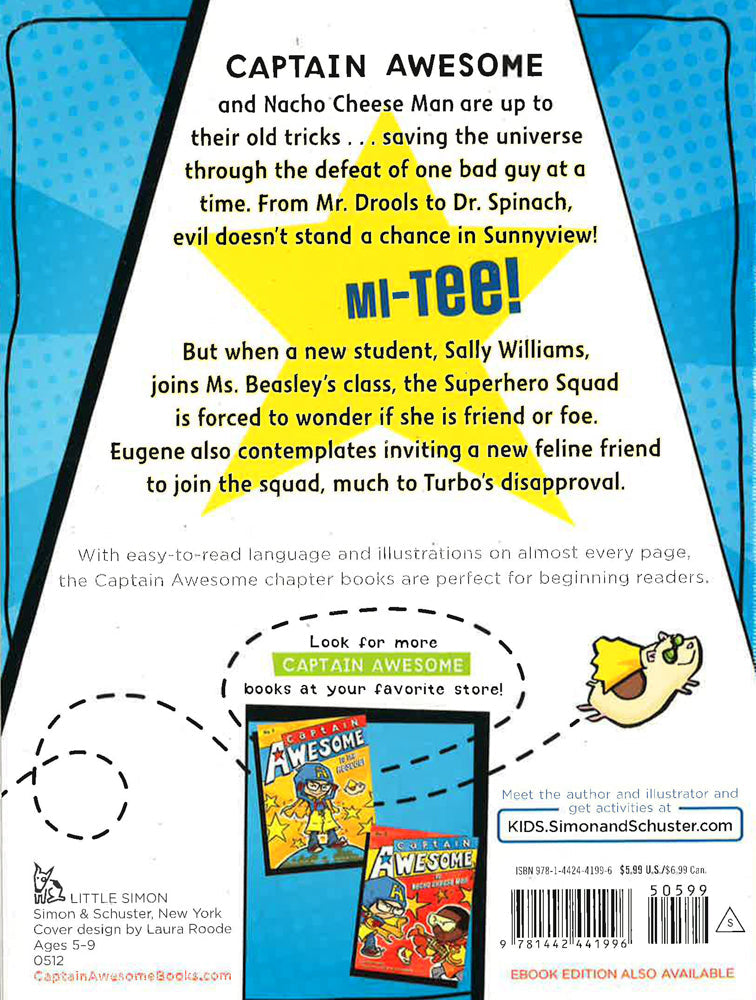 Captain Awesome and Nacho Cheese Man must decide if new student Sally Williams is friend or foe in this third Captain Awesome story. MI-TEE!