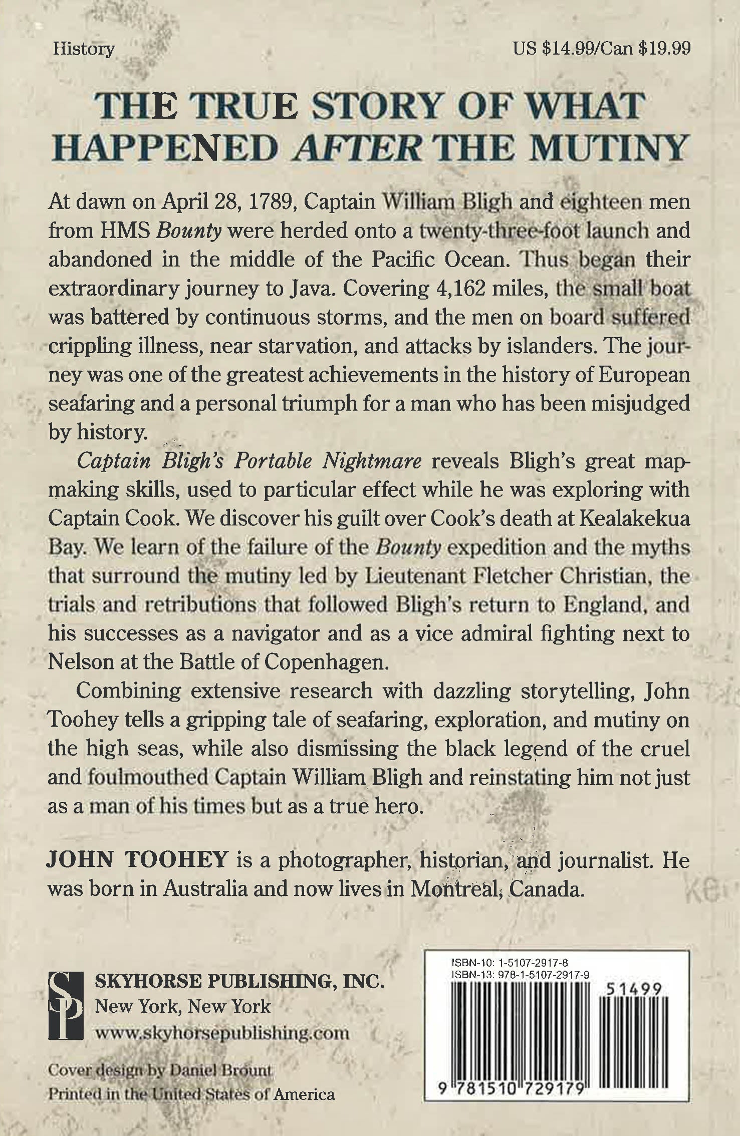 Combining extensive research with dazzling storytelling, John Toohey tells a gripping tale of seafaring, exploration, and mutiny on the high seas, while also dismissing the black legend of the cruel and foulmouthed Captain William Bligh and reinstating him not just as a man of his times but as a true hero.