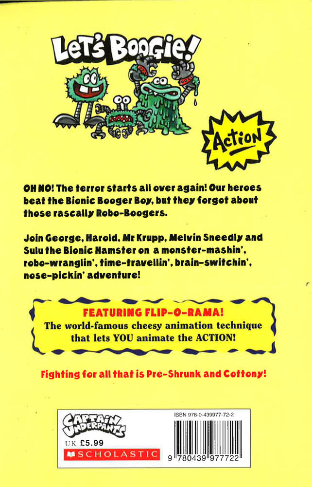 Just when George and Harold thought they were safe - here come the robo-boogers! Disgusting and dangerous crosses between hi-tech wizardry and, well . snot, they're out to take over the world. Have your hankies ready!