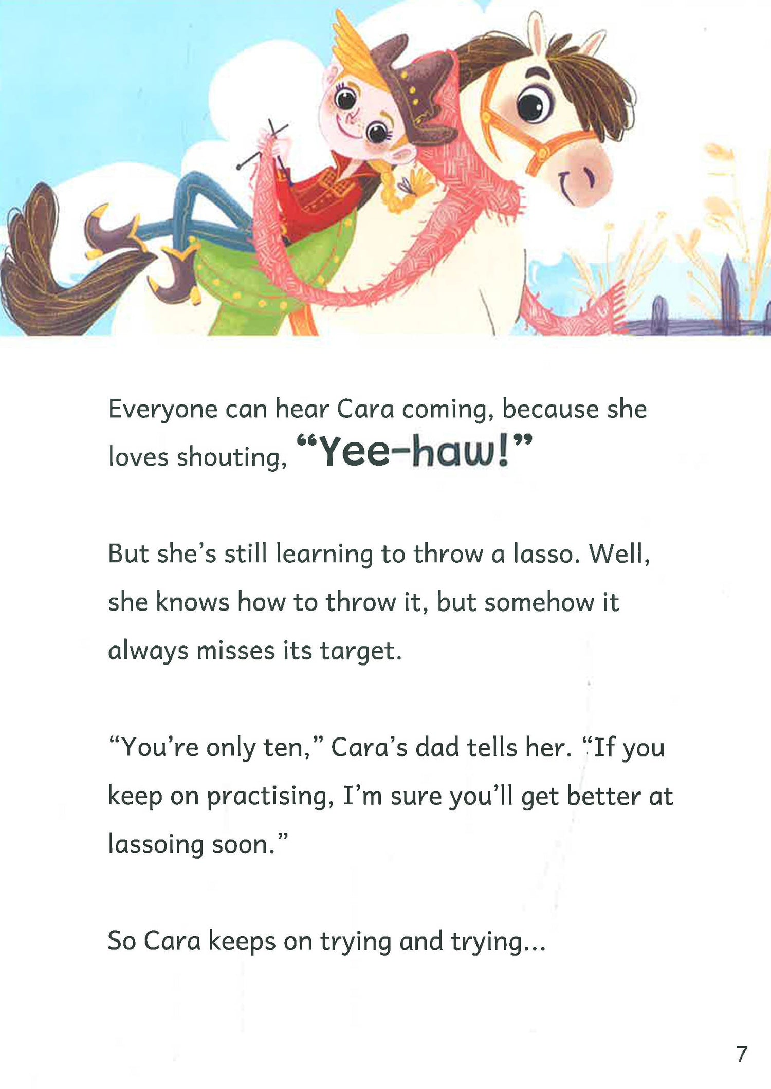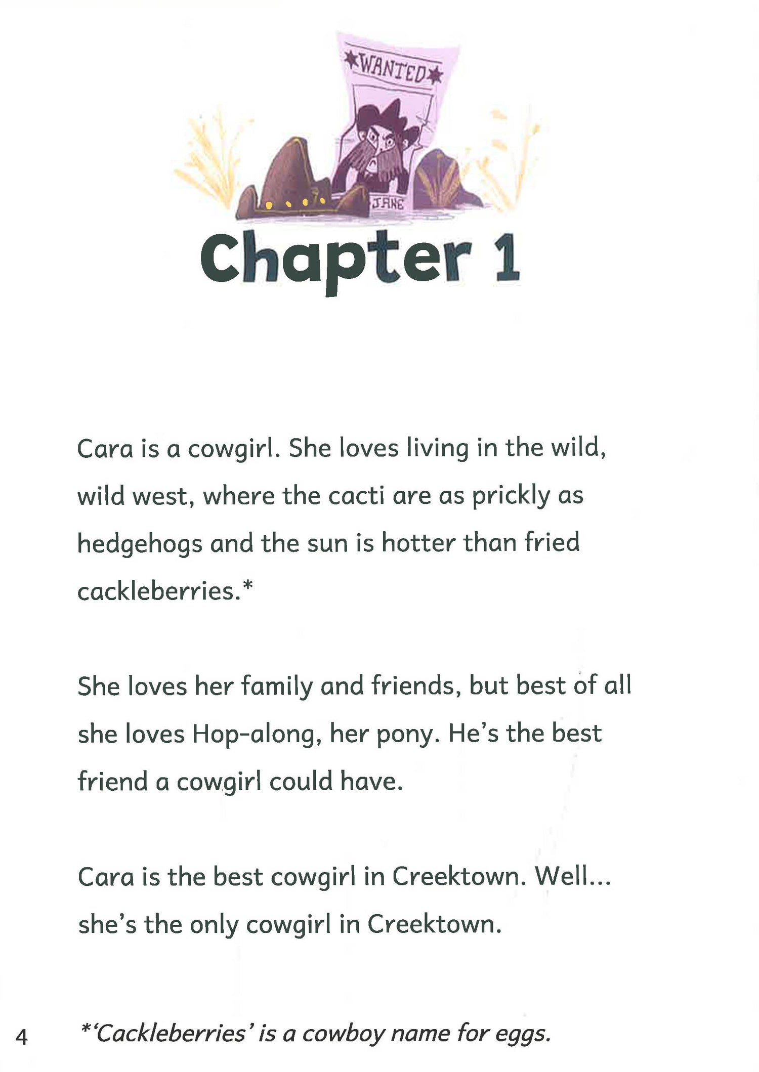 Cara is the best cowgirl in Creektown. Well... she's the only cowgirl in Creektown! Written by Elizabeth Dale, this educational Early Reader book is book band White (aimed at 6-7 years, Year 2-3).The colour grading system is recognised by the Institute of Education which reflects the reading difficulty. The book content, language style, phonics and layout are taken into account to determine this.