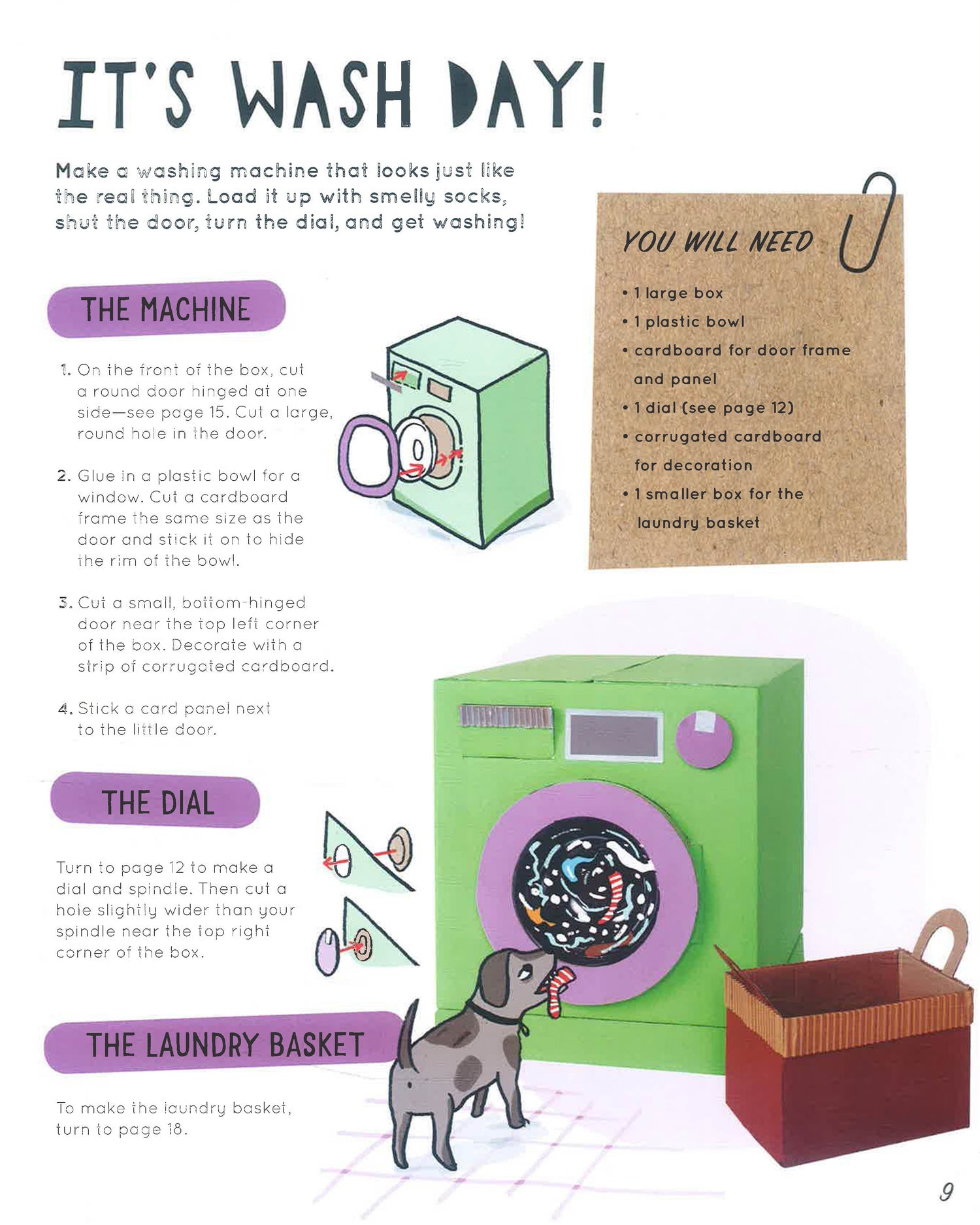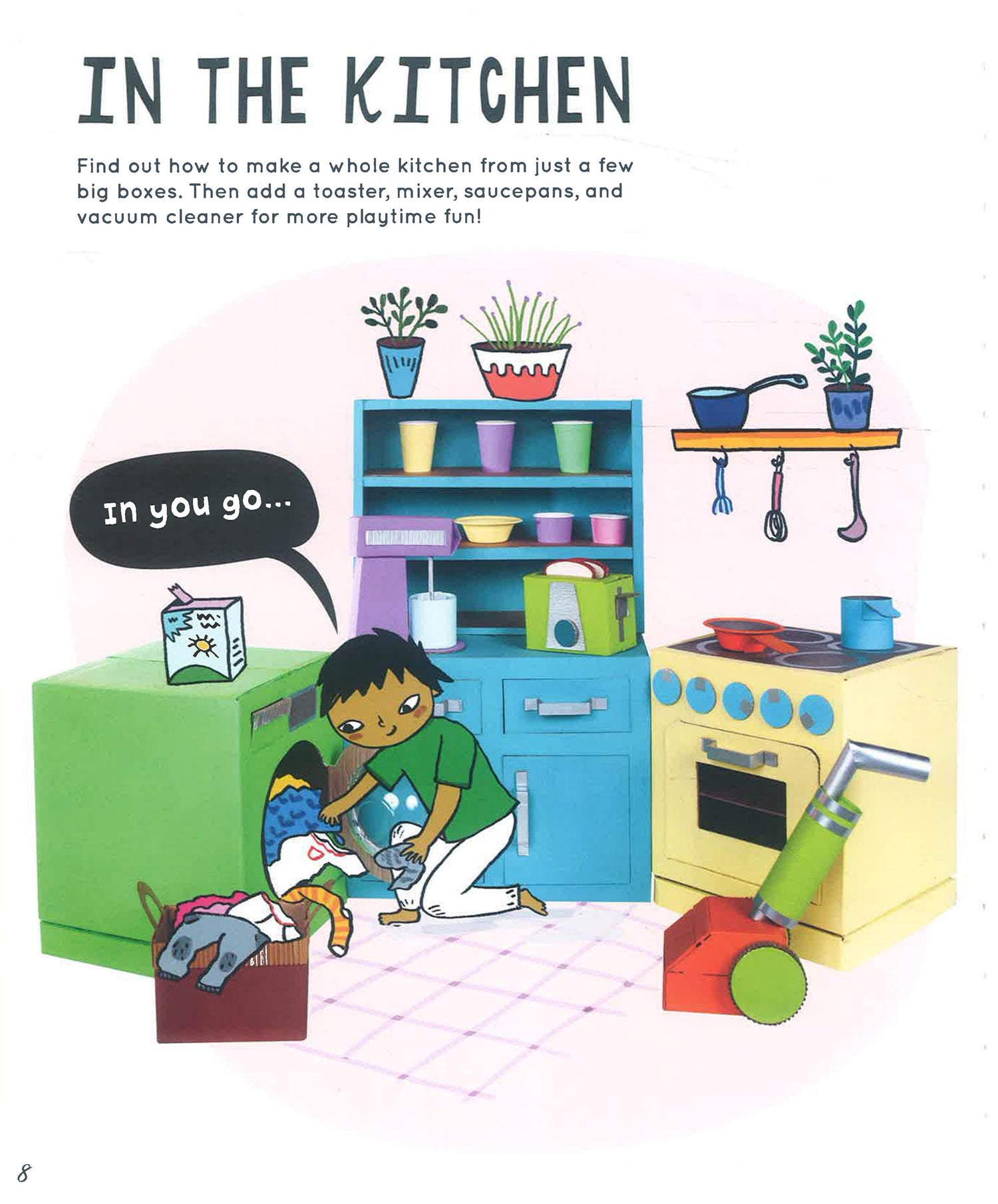 Nothing beats the joy a cardboard box can bring on a rainy day. Want to fly a plane? Get a cardboard box. Want to go to space? Cardboard box. Want to build a castle and hold a jousting tournament? That’s right – you need a cardboard box! Cardboard Creations is bursting full of ideas for how to turn that magical cardboard box into so many exciting playthings. In House Stuff you can build a kitchen to cook in or a shop with its own to till to run in using the simple instructions and full colour photos. Like the humble cardboard box, this book will stretch as far as your imagination will allow. What will you build?