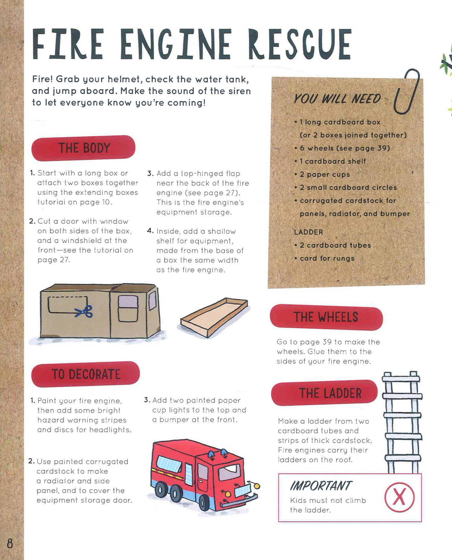Nothing beats the joy a cardboard box can bring on a rainy day. Want to fly a plane? Get a cardboard box. Want to go to space? Cardboard box. Want to build a castle and hold a jousting tournament? That&;s right&;you need a cardboard box! Cardboard Creations is bursting full of ideas for how to turn that magical cardboard box into so many exciting playthings. In Vehicles, you can build a car to race in or a rocket ship to fly to space in using the simple instructions and full color photos. Like the humble cardboard box, this book will stretch as far as your imagination will allow. What will you build?