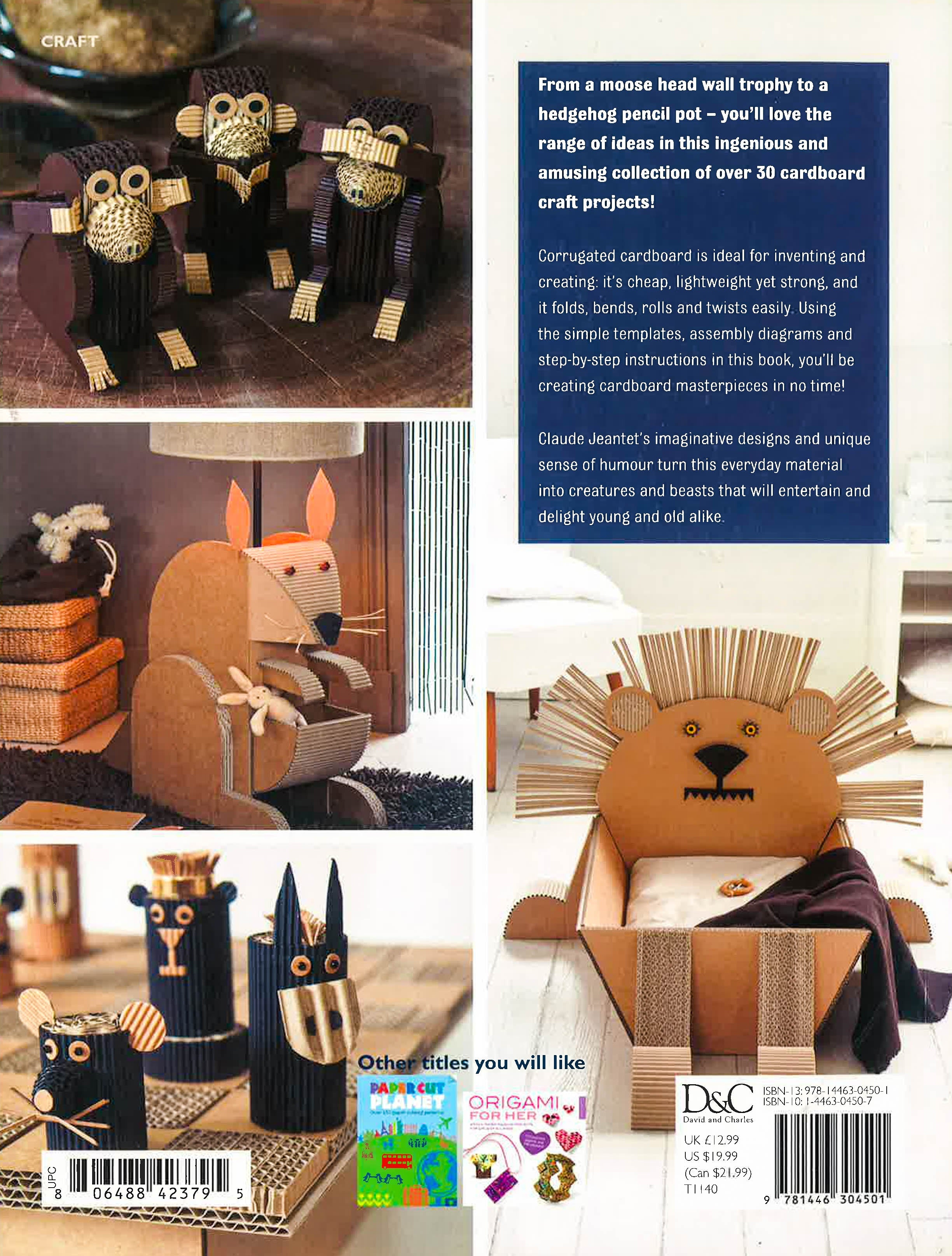 Cardboard has never been so much fun - just look what you can make with it! So before you bin that box, take a look at the clever ideas in this exciting new book of cardboard animal projects. This book will show you how to make on-trend homewares with quirky style - you'll be astounded by the endless possibilities from this cheap, versatile and accessible material! Corrugated cardboard is ideal to invent and create artistic forms: it is light and resistant, and it easily folds, bends, rolls and twists. The projects in this book are simple, fun and diverse, ranging from ornamental animals and cute trinket boxes through to a Noah's ark clock, an elephant pot plant holder and a penguin cupboard! The book covers a wide range of techniques, ideas and inspiration, across a variety of themes including stationery, home decor, gifts and accessories. All of the key cardboard craft techniques are introduced, with easy-to-follow step-by-step instructions. With this book you will learn how to turn this everyday material into animals and beasts that will delight both children and adults.