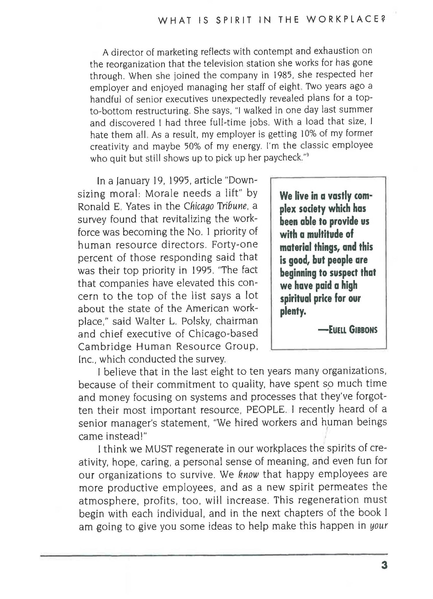 "Several checkout lines were open and empty, but one had a long line. The customers patiently waited to have their groceries bagged by one special smiling clerk. Why? Because Johnny always placed a note with his 'thought of the day' in each shopper's bag." Humanizing the workplace need not be complex. Small gestures like Johnny's can make a world of difference. In this heartwarming book Barbara Glanz tells you exactly how to bring those little touches that mean so much to the place where you work, whether you are employee or boss. Filled with hundreds of happiness - and morale-boosting suggestions, "CARE Packages for the Workplace" shows you how to bring caring, communication, and respect to the place where you work.