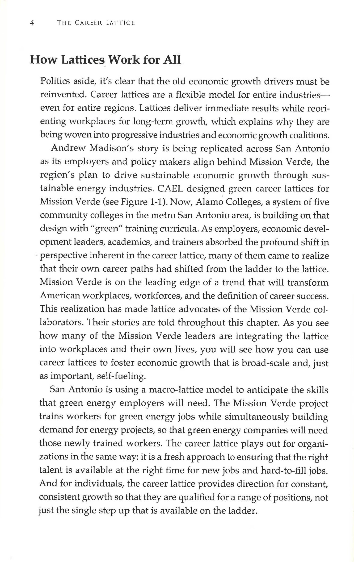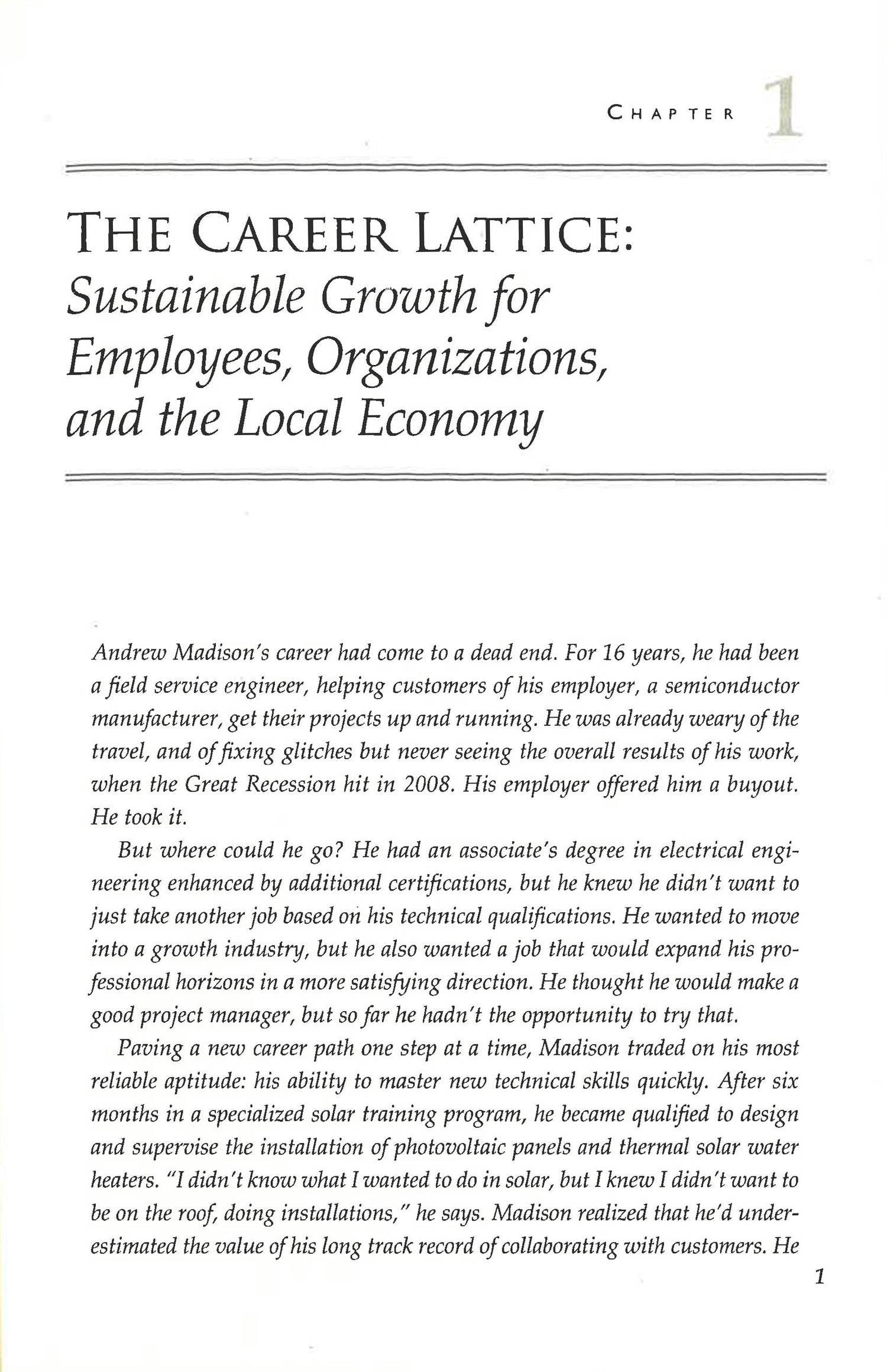 OVER IS THE NEW UP. Thanks to the rise of global labor, increasing automation of job functions, and the flattening of workplace organizations, the traditional corporate ladder is gone - and we'll probably never see it again. For smart, talented, motivated workers, this is the best career news to emerge in a long time. Instead of following the path of predetermined corporate hierarchies, you need to design a more flexible career path. It's called the Career Lattice, and it's about adding new skills to current abilities - while letting go of things that are no longer relevant. It's about evolving. It's about embracing change. In The Career Lattice, career consultant and business journalist Joanne Cleaver gives you the insight, information, tools, and best practices you need to: Invest in the best training or continued education for your future goals Make smart lateral moves now to help you make upward moves later Network more strategically than ever See possibilities down the road that would otherwise have escaped you The Lattice is both more stable and more dynamic than the linear career ladder. No matter your age or career stage, latticing equips you to make your move into emerging jobs or careers in all industries with more speed, skill, and confidence than your competitors. It isn't your father's world of business anymore. Linearity is out; flexibility is in. The Career Lattice is what you need to make the smartest possible career decisions in a completely transformed world of business.