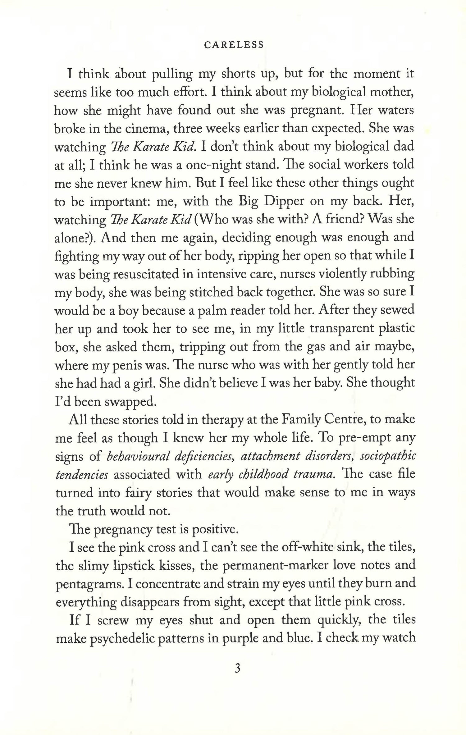 'The literary equivalent of gold dust' Benjamin Zephaniah Sometimes it's easy to fall between the cracks... At 3.04pm on a hot, sticky day in June, Bess finds out that she's pregnant. She could tell her social worker Henry, but he's useless. She should tell her foster mother, Lisa, but she won't understand. She really ought to tell Boy, but she hasn't spoken to him in weeks. Bess knows more than anyone that love doesn't come without conditions. But this isn't a love story...