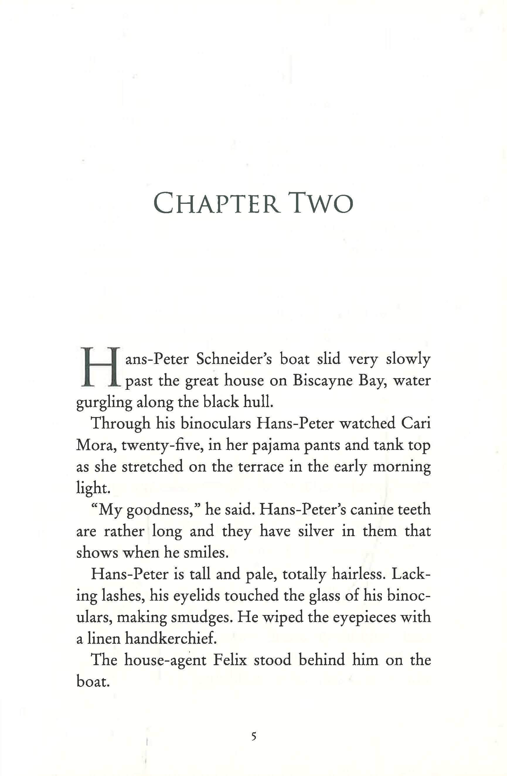 Cari Mora, caretaker of the house, has escaped from the violence in her native country. She stays in Miami on a wobbly Temporary Protected Status, subject to the iron whim of ICE. She works at many jobs to survive. Beautiful, marked by war, Cari catches the eye of Hans-Peter as he closes in on the treasure. But Cari Mora has surprising skills, and her will to survive has been tested before.