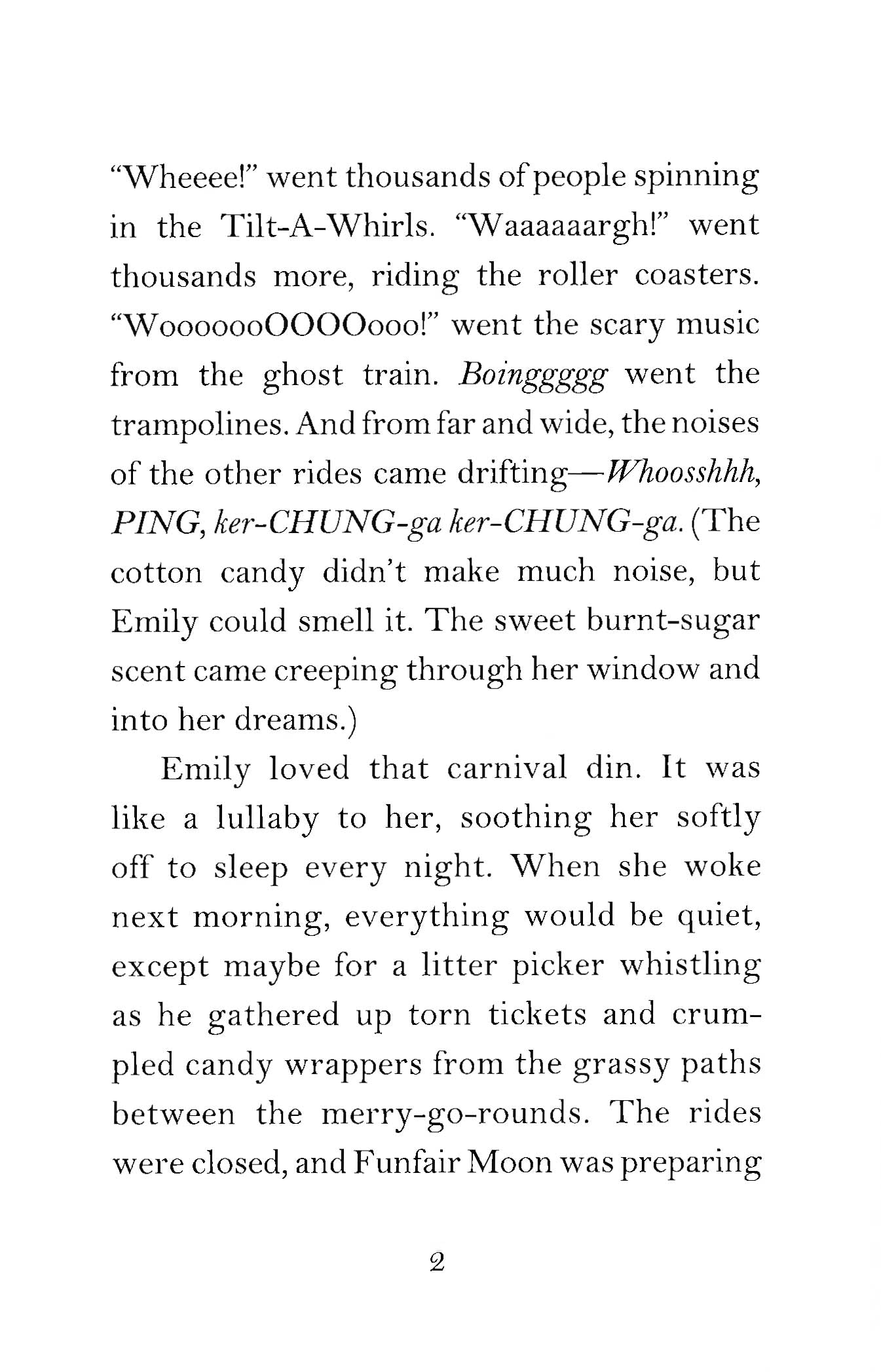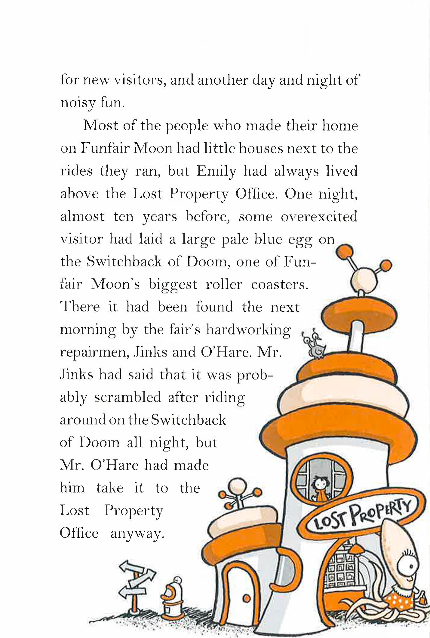 Funfair Moon, the outer space amusement park where Emily lives, has the highest roller coasters, the most dizzying Tilt-A-Whirls, and the scariest ghost train in the galaxy. Normally, Emily's heroes Jinks and O'Hare keep it in tip-top shape. But the day the funfair inspector comes, everything goes wrong. Peeploid's Merry-Go-Round and Fudge Shoppe is spinning out of control, gravity has reversed on the biggest slide, and there are strange little spiny black balls all over the place! Can Emily help fix the carnival before the inspector closes it for good? For early chapter book readers who are ready for something longer, the Not-So-Impossible Tales are packed with humor, action, and illustrations on almost every page.