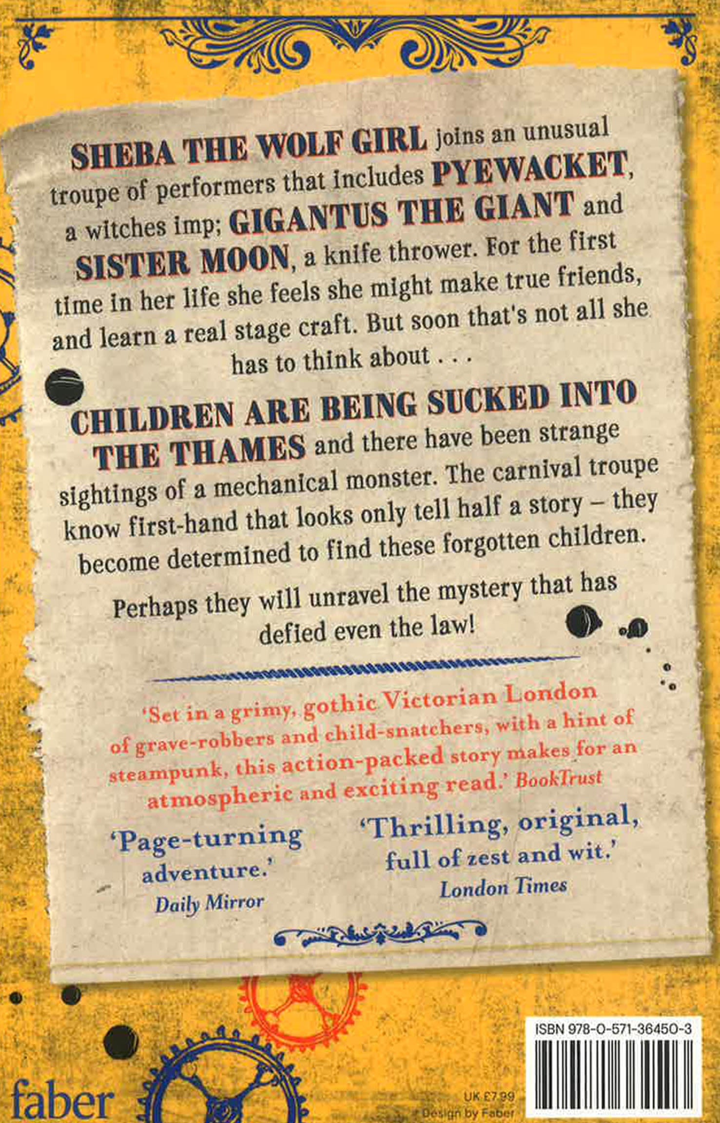 Sheba the wolf girl joins an unusual troupe of performers that includes Pyewacket, a witch's imp; Gigantus the giant and Sister Moon, a knife thrower. For the first time in her life she feels she might make true friends, and learn a real stage craft. But soon that's not all she has to think about . . .