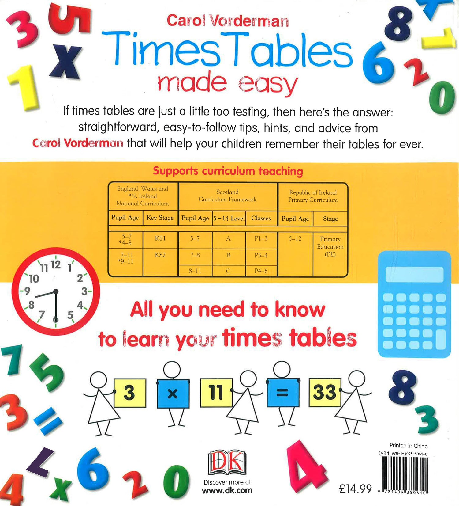 Mastering the times tables is an essential skill that all children undertake at school. It is also a skill that will stand children in good stead, not just for their school years but also as they progress into adulthood. In Times Tables Made Easy, Carol Vorderman provides a straightforward guide to learning the times tables with two practice workbooks that will help children aged 7 and over memorise them. The book also features reward stickers and a certificate to help children remember what can sometimes be a tricky subject.