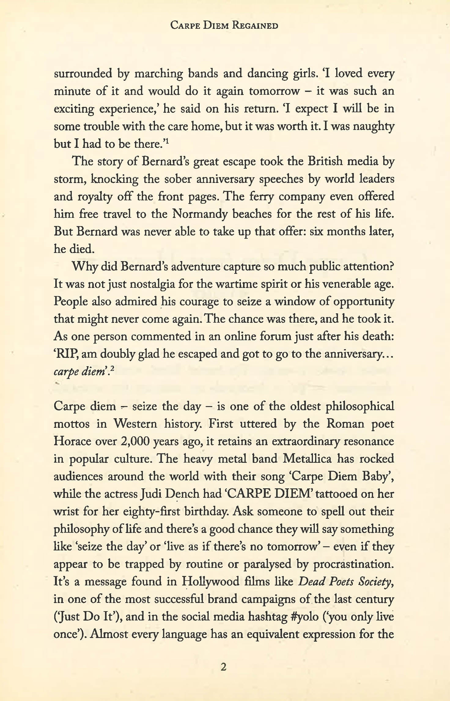 Carpe diem - `seize the day' - is one of the oldest pieces of life advice in Western history. But its true spirit has been hijacked by ad men and self-help gurus, reduced to the instant hit of one-click online shopping, or slogans like `live in the now'. We need to reclaim it to make sense of our complex, confusing times.