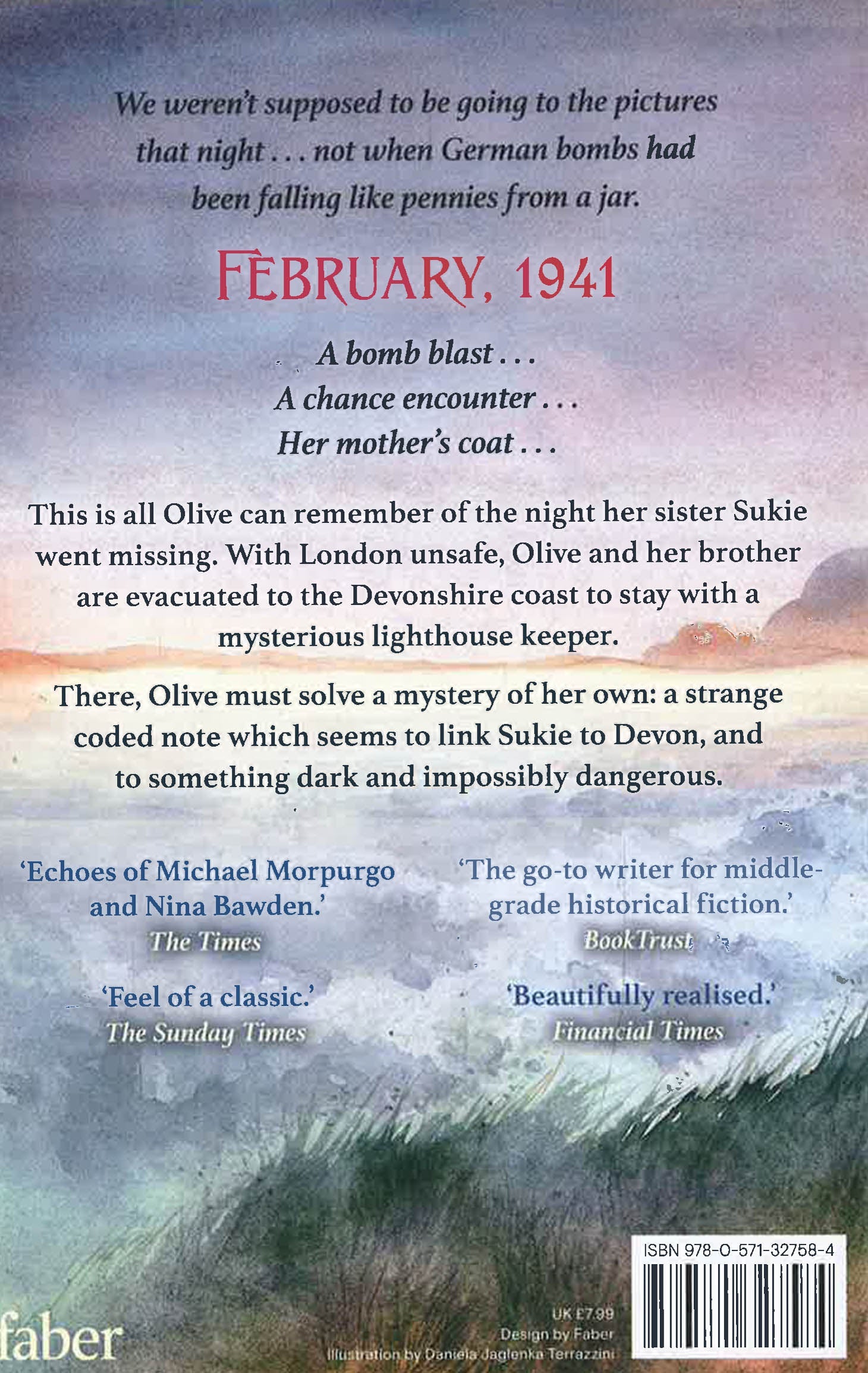 Desperate to be helpful, Olive becomes his post-girl, carrying secret messages (as she likes to think of the letters) to the villagers. But Olive has a secret of her own. Her older sister Sukie went missing in an air raid, and she's desperate to discover what happened to her. And then she finds a strange coded note which seems to link Sukie to Devon, and to something dark and impossibly dangerous.