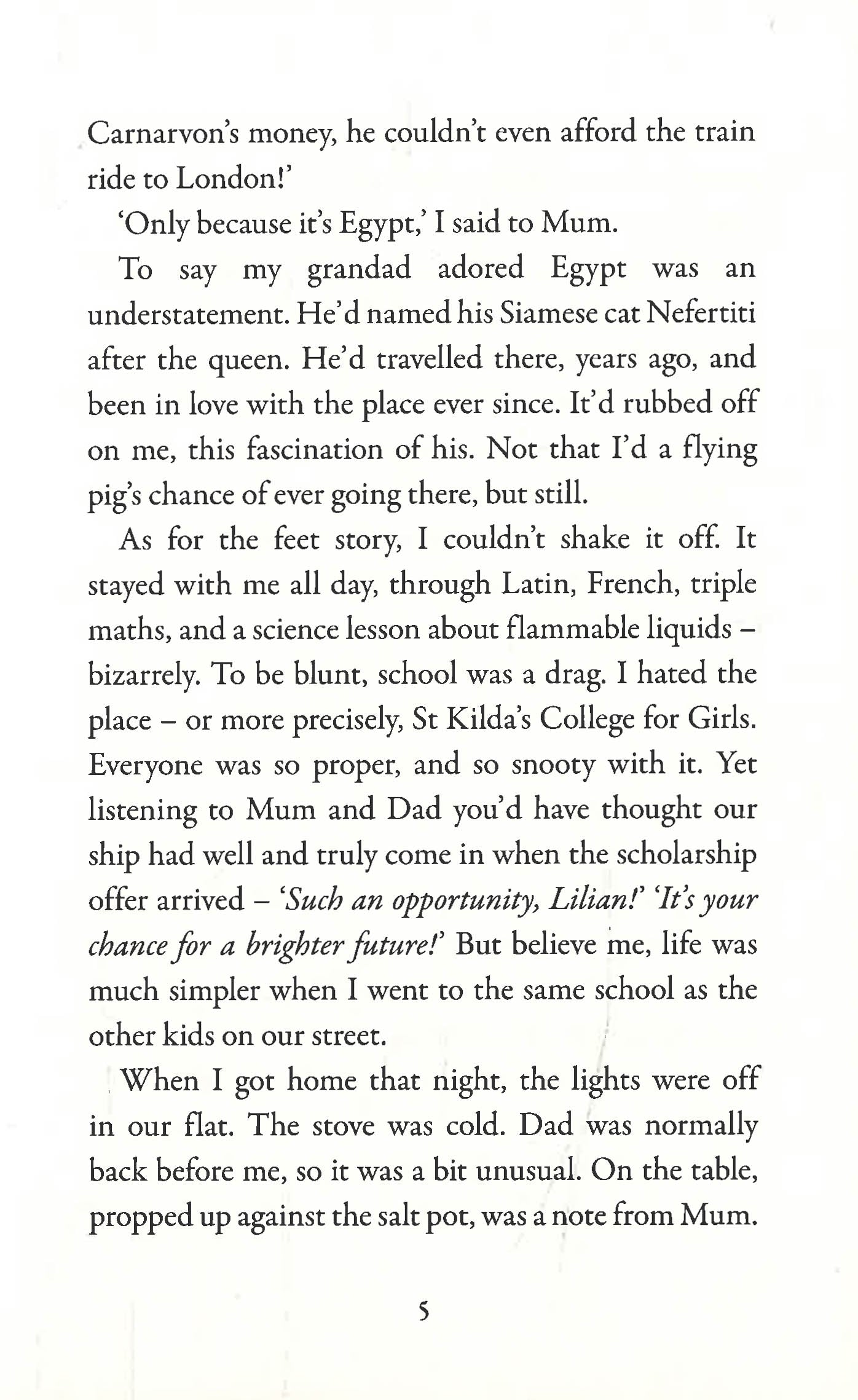 When Lilian Kaye finds a parcel on her grandad's doorstep, she is shocked to see who sent it: a famous Egyptologist, found dead that very morning, according to every newspaper in England!