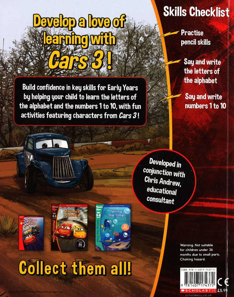Learn your ABCs and 123s with your favourite characters from Cars 3! The Disney Learning approach gives children the skills to succeed with fun and imaginative learning practice.