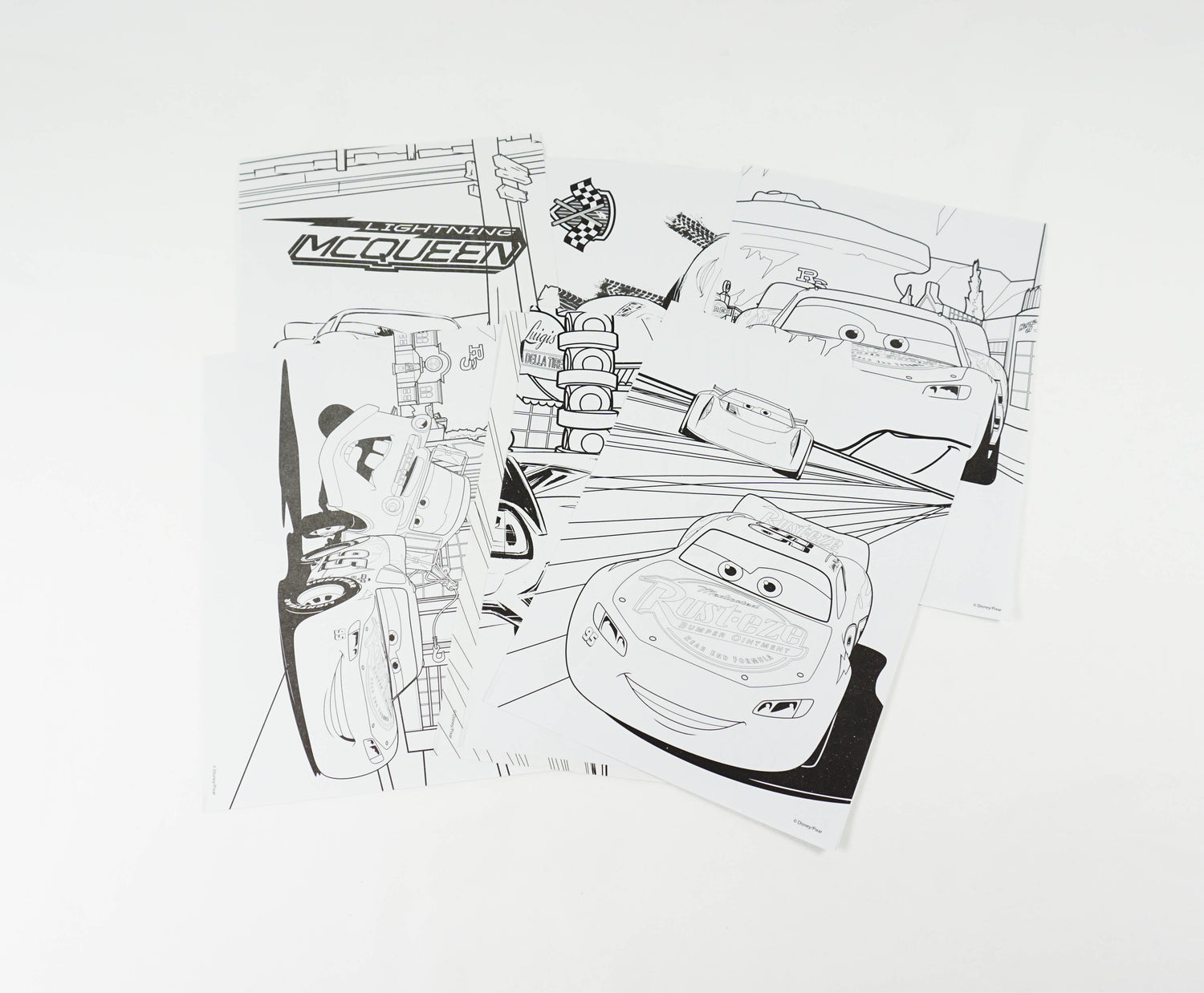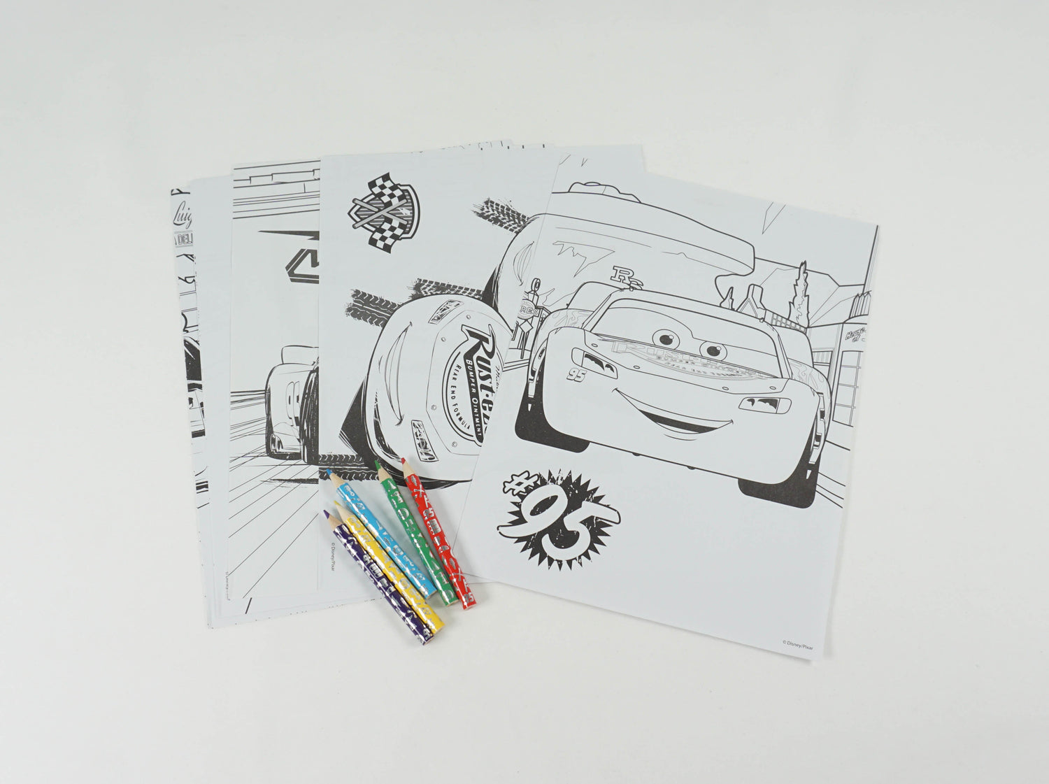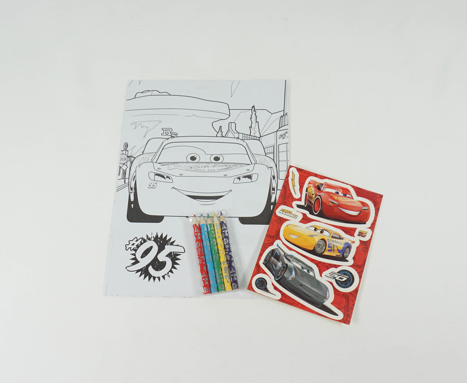 8 colouring sheets 5 colour pencils 1 sticker sheet