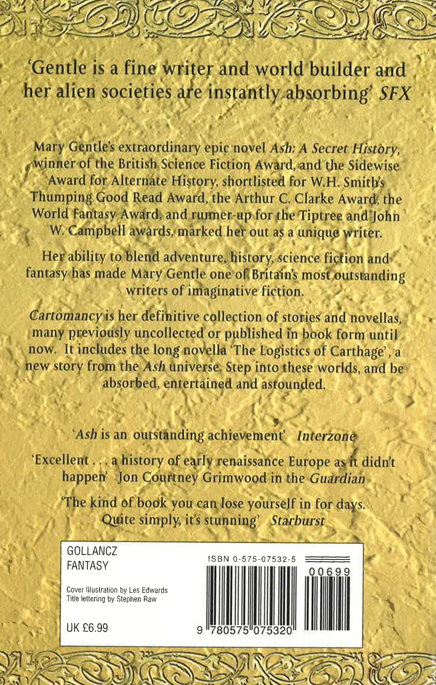 Mary Gentle is one of Britain's most outstanding writers of imaginative fiction, able to move seamlessly from science fiction to fantasy within the same story. Following on from the success of ASH, 1610: A SUNDIAL IN A GRAVE and the omnibus volumes WHITE CROW and ORTHE, comes CARTOMANCY, the definitive collection of Mary Gentle's short fiction. CARTOMANCY includes the stories from SOLDIERS AND SCHOLARS as well as a number of tales previously unpublished in book form, all with new afterwords and topped and tailed with a specially revised version of her split story 'Cartomancy'.