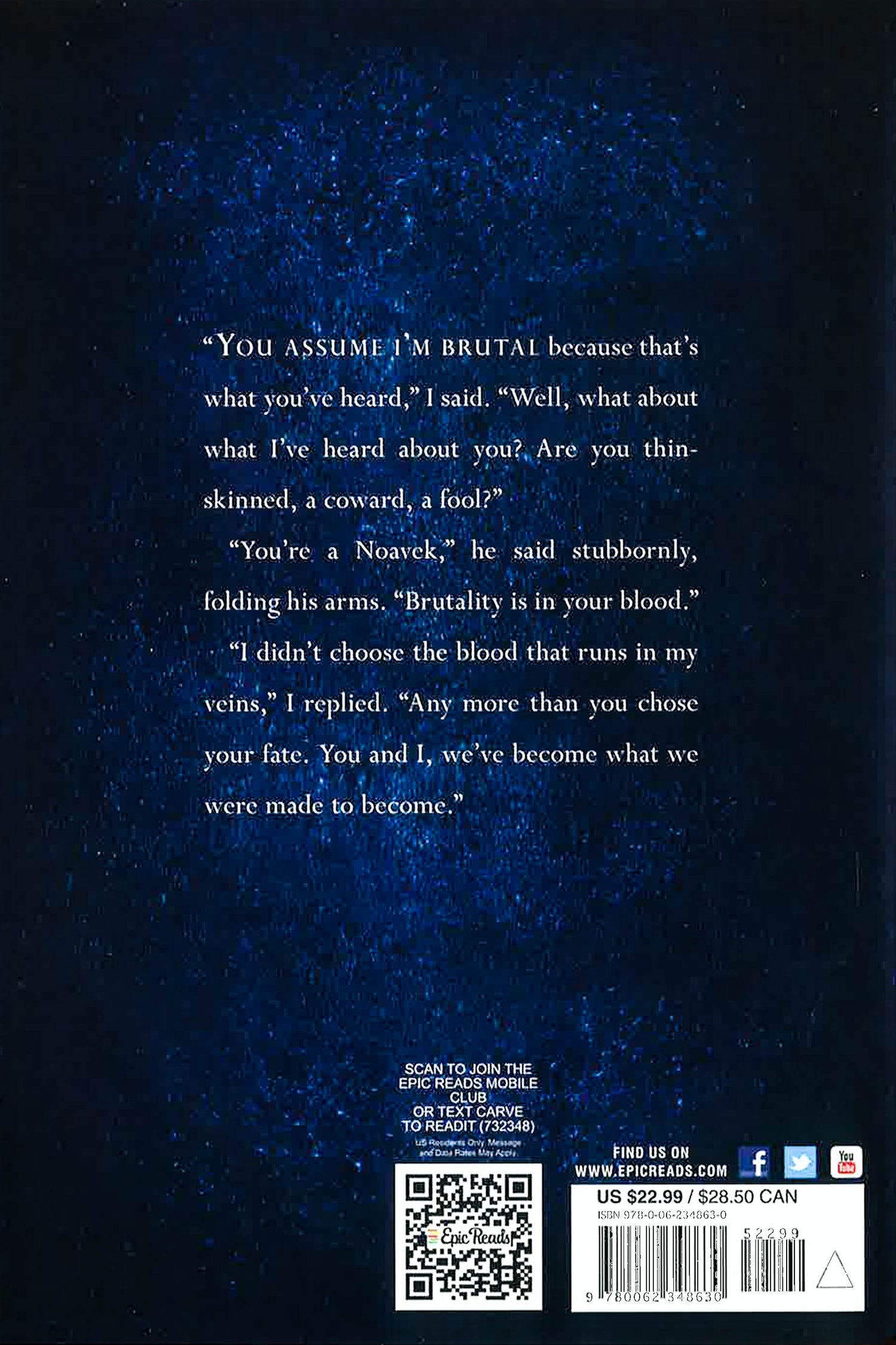 Cyra Noavek and Akos Kereseth have grown up in enemy countries locked in a long-standing fight for dominance over their shared planet. When Akos and his brother are kidnapped by the ruling Noavek family, Akos is forced to serve Cyra, the sister of a dictator who governs with violence and fear. Cyra is known for her deadly power of transferring extraordinary pain unto others with simple touch, and her tyrant brother uses her as a weapon against those who challenge him. But as Akos fights for his own survival, he recognizes that Cyra is also fighting for hers, and that her true gift--resilience--might be what saves them both.