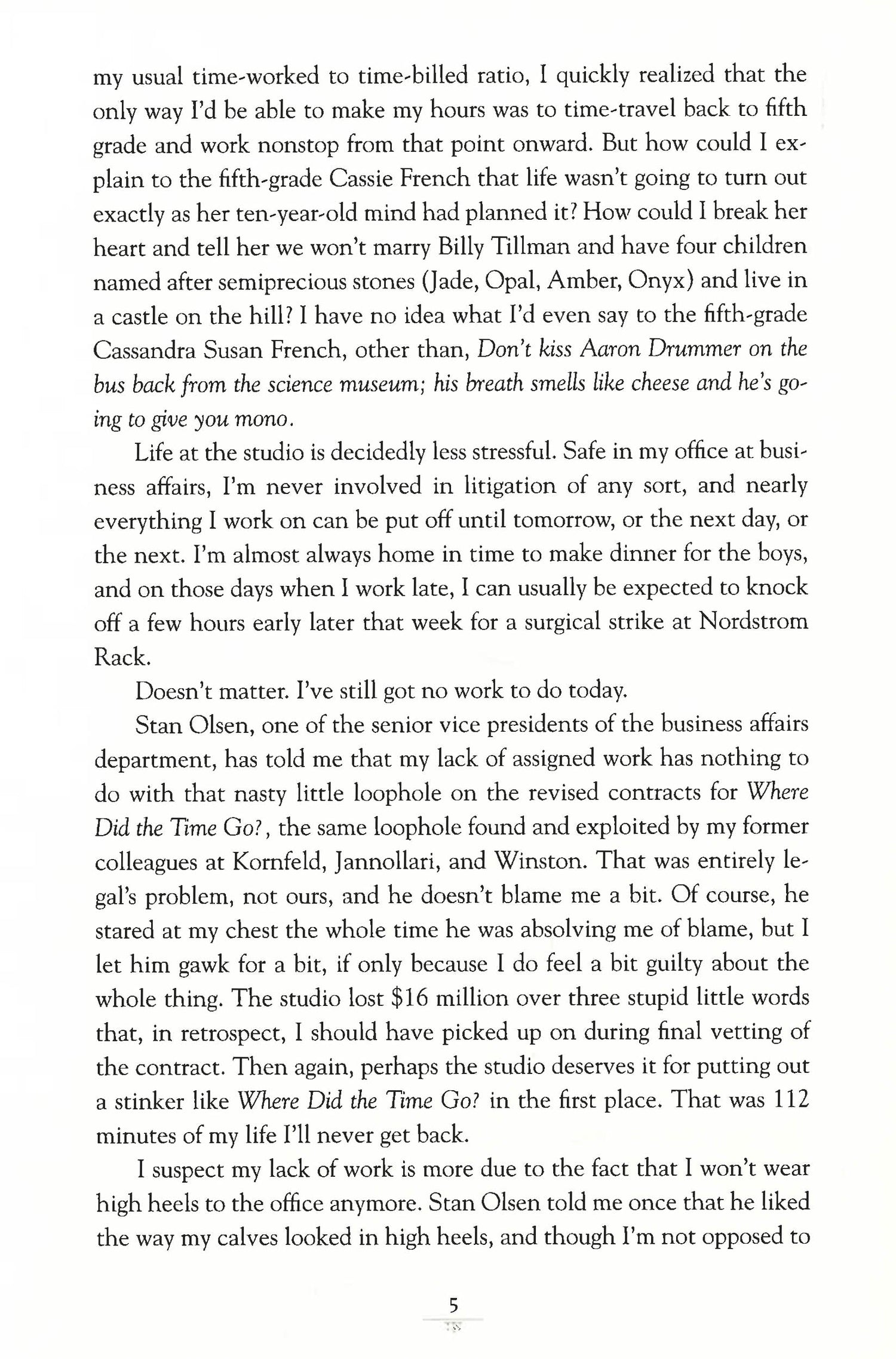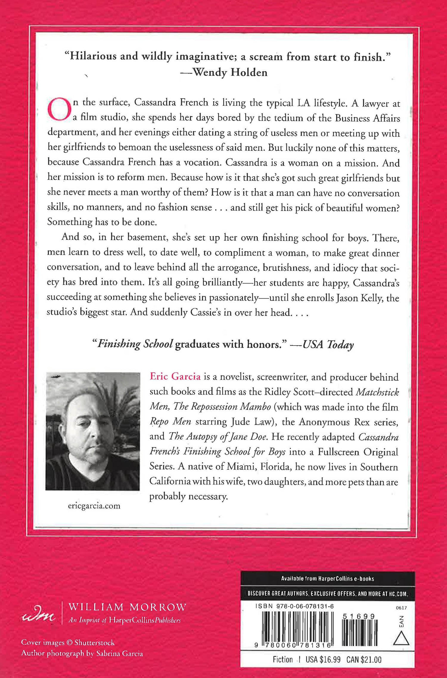 Cassandra French is a twenty-nine-year-old business affairs lawyer for a movie studio in Los Angeles. She has a creepy, platitudinous mother who is under house arrest for telemarketing fraud; and two best friends: studio exec Claire, who's sleeping with her shrink, and Lexi, a blond man-magnet of a yoga instructor. Oh, and she also has three handsome young men chained to cots in her basement. They're enrolled in Cassandra French's Finishing School For Boys. Cassie has spent years in the dating hell that is Los Angeles, finding man after man who doesn't quite match up to her exacting standards. When Owen, a promising young man she meets at a baseball game, becomes a glassy eyed drunk by the seventh inning, she decides that all he needs is a little push in the right direction; after he passes out in her car, she brings him home, locks him up downstairs, and commences a year and a half of lessons on color coordination, behavior on dates, and occasionally, sex. Owen proves an able student and is followed by two other likely candidates. Things start to get a little complicated when Jason Kelly, Hollywood's biggest heartthrob, tries to seduce Cassie into fudging a contract issue on one of his movies. That's no way to treat a lady - and Cassie has just the cure.