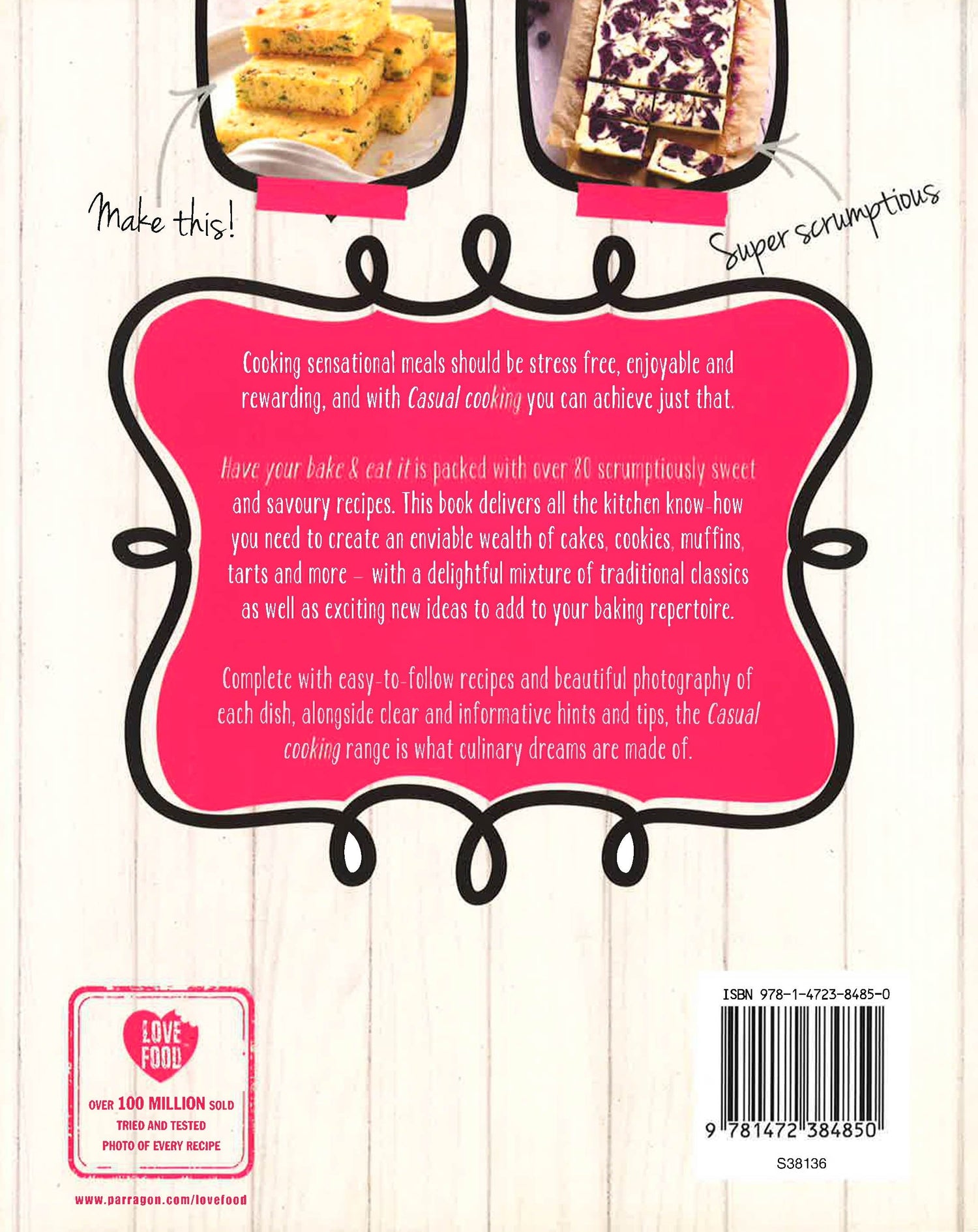 Cooking can be both fun and rewarding when you have the right tools. With Casual Cooking: Have Your Bake & Eat It, you can tackle the kitchen with confidence and create beautiful home-baked treats, dishing up delights such as Red Velvet Cake, Blueberry Cheesecake Bars and Tomato & Rosemary Focaccia. With fabulous recipes, stunning photography, helpful hints, tips and variations there's nothing to stop you from cooking up a treat every day of the week.