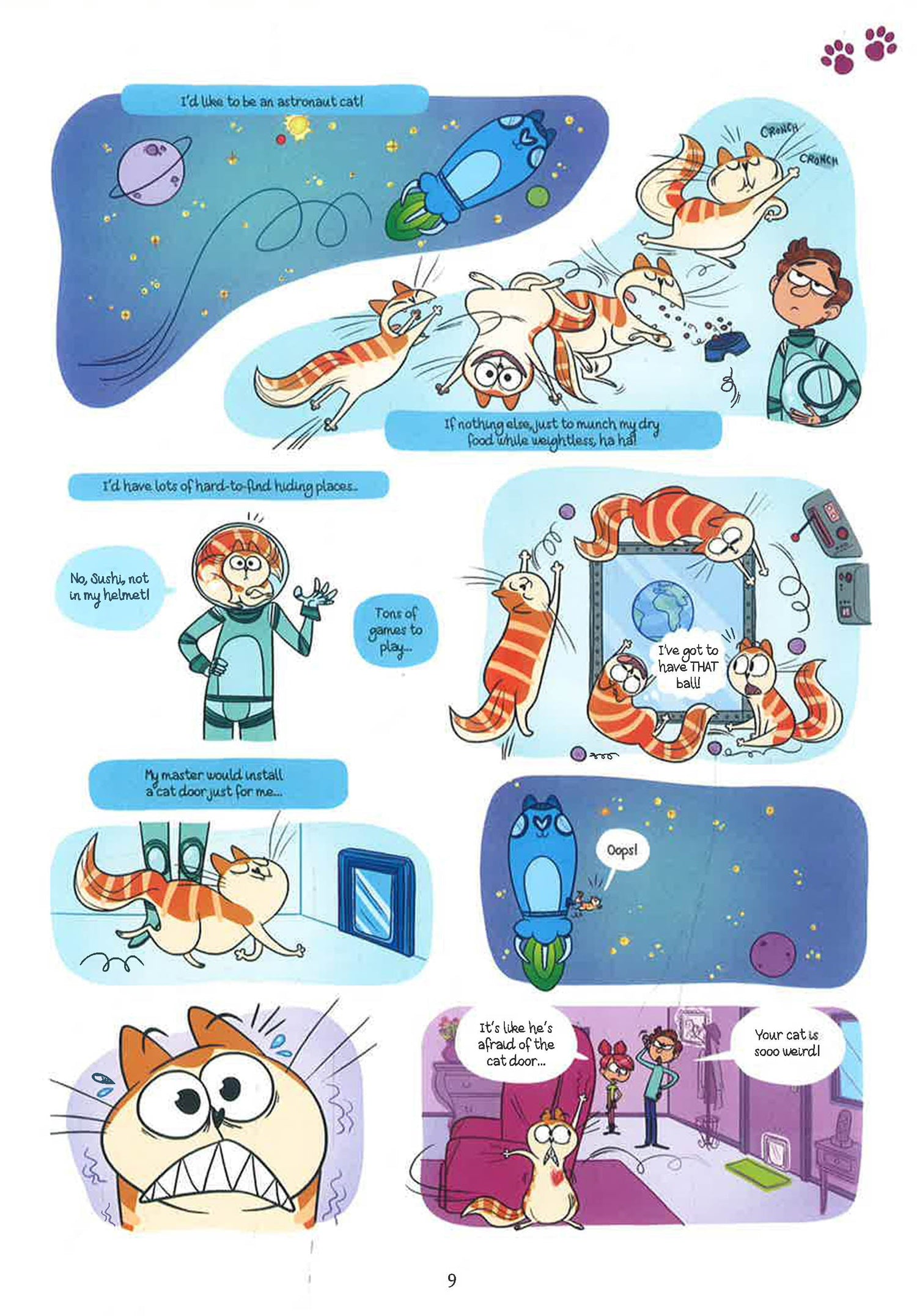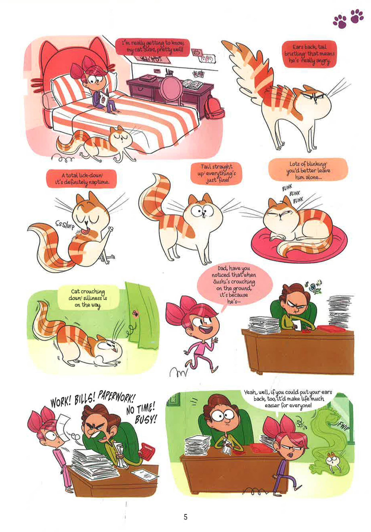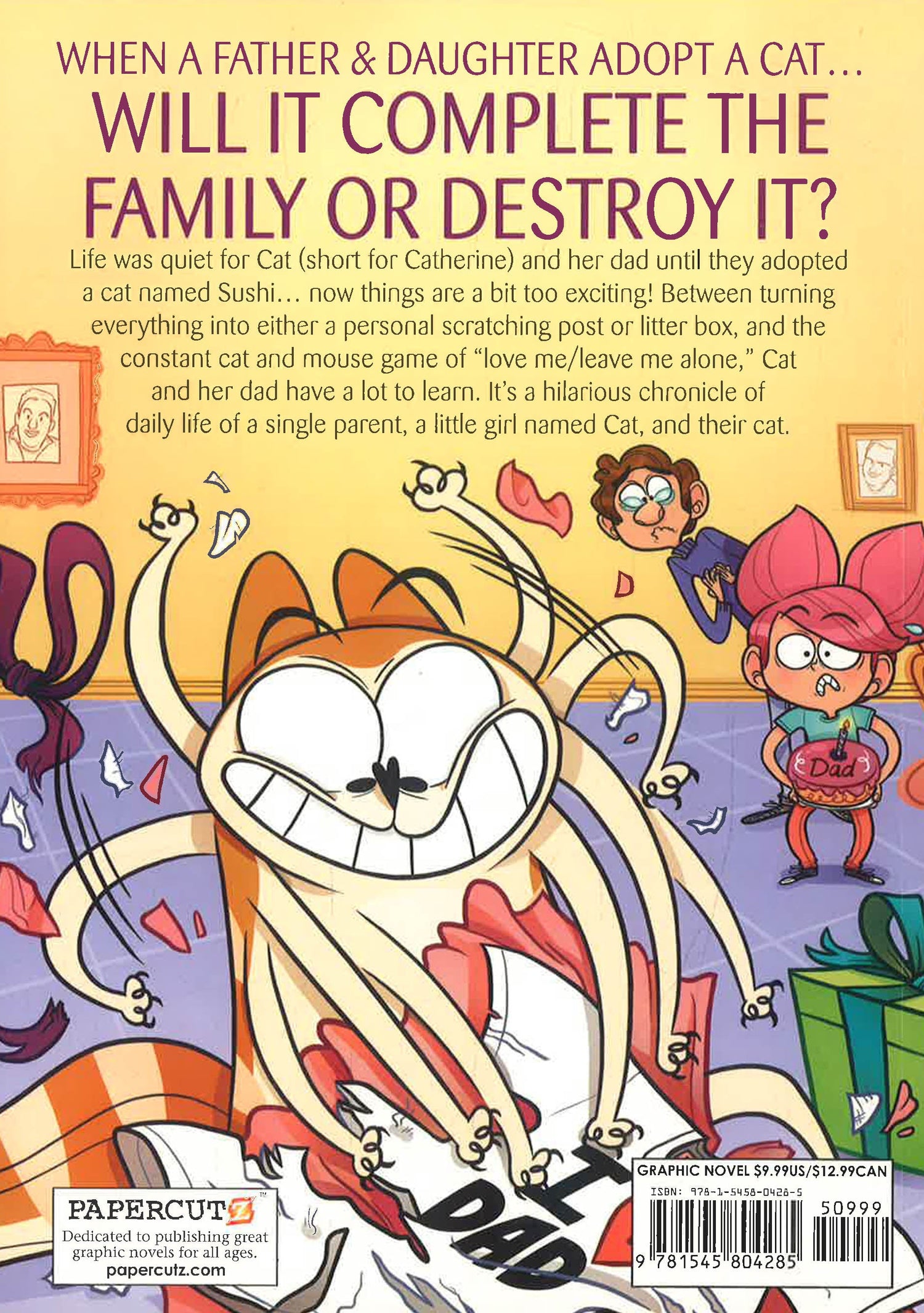 Life was quiet for Cath and her dad, living alone. But when they adopt a cat named Sushi, things get a bit too exciting! Between turning everything into either a personal scratching post or litter box, and the constant cat and mouse game of “love me/leave me alone,” Cath and Dad have a lot to learn! Cath also learns how good it is to have a constant companion, a role Cath’s dad is trying to fill on his own. It’s a hilarious and heartwarming adventure of daily life of this little girl...with a dad and a cat along for the ride!