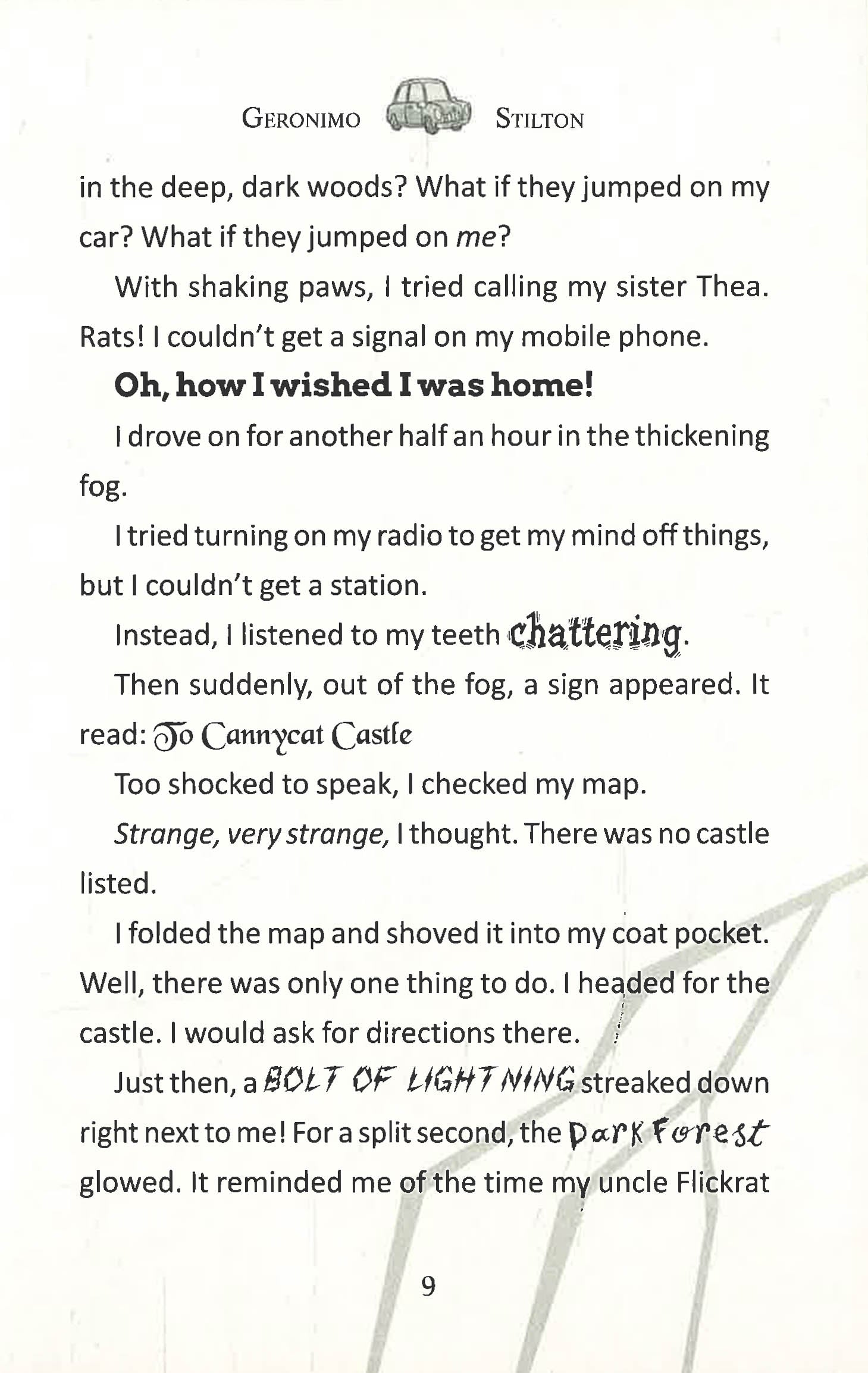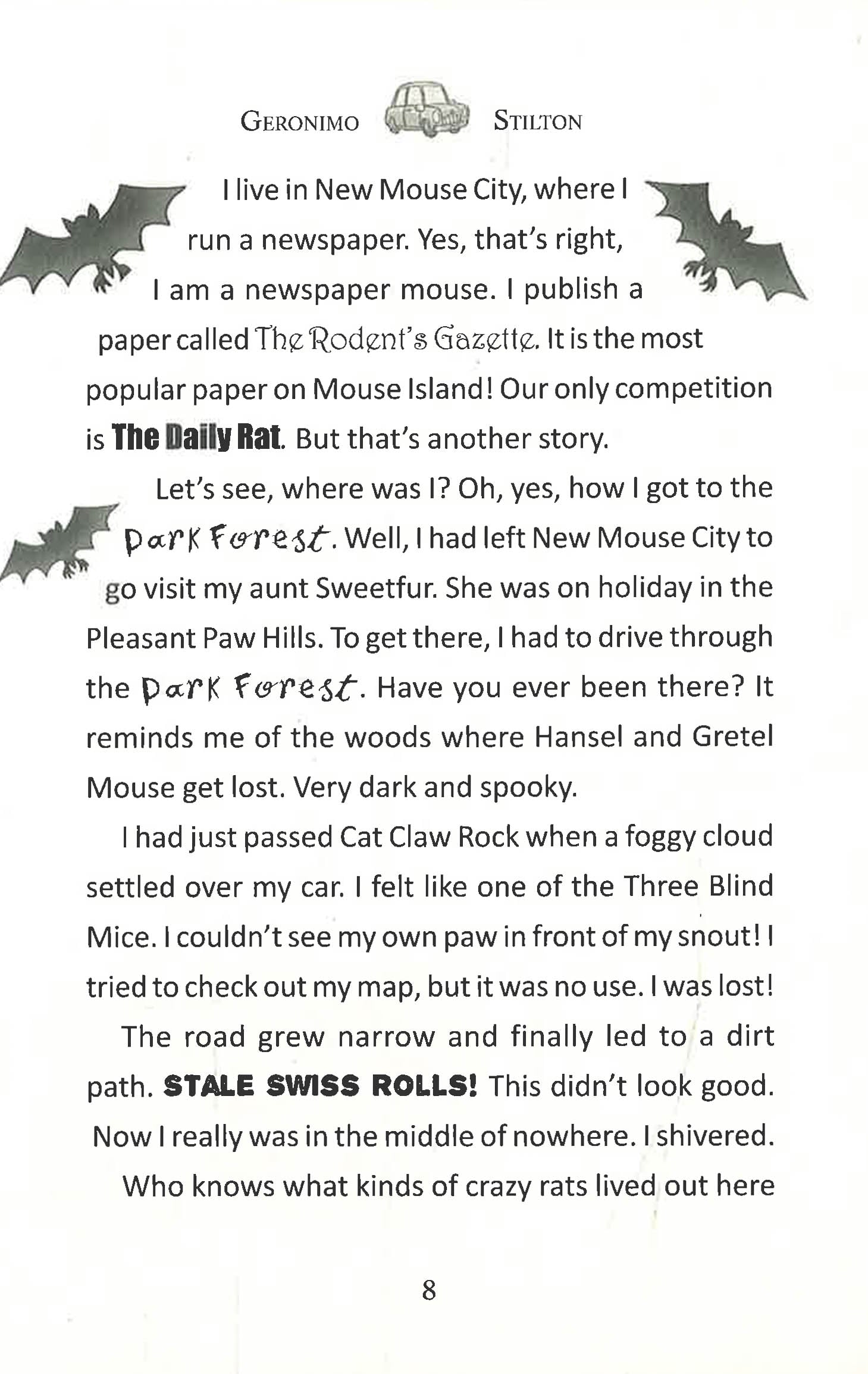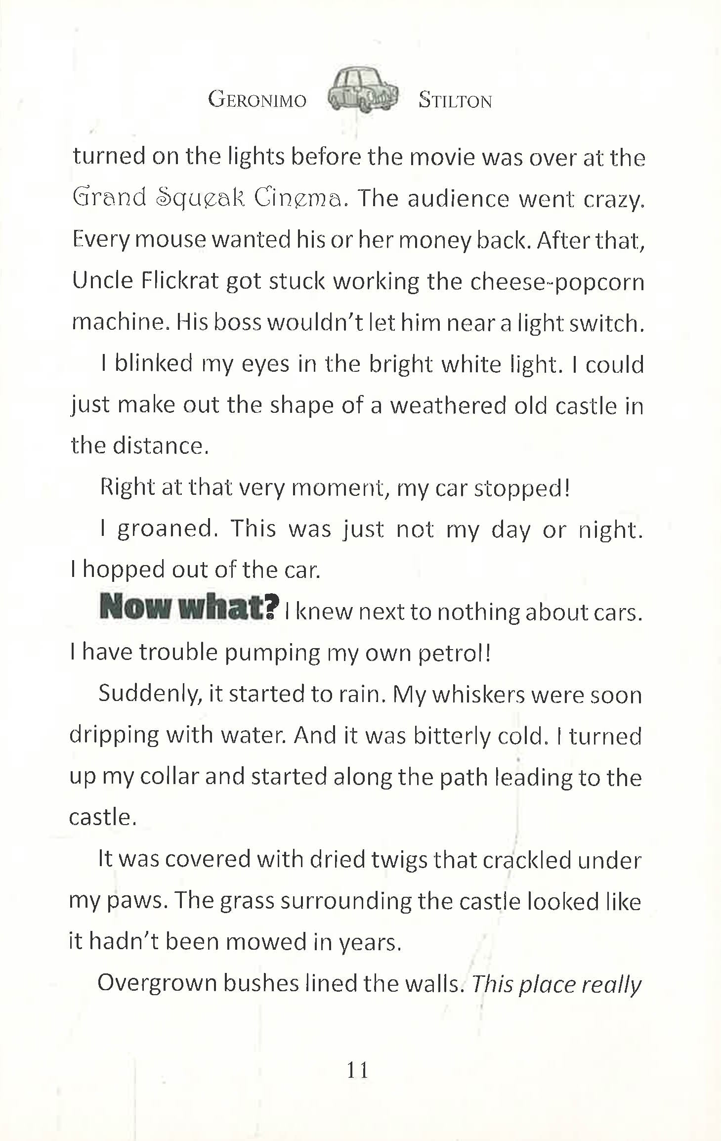 It's Halloween and Geronimo is lost in a dark, spooky forest! His car has broken down and the nearest shelter is a creepy old castle. But is it as deserted as he thinks? And what is that mysterious creaking sound?