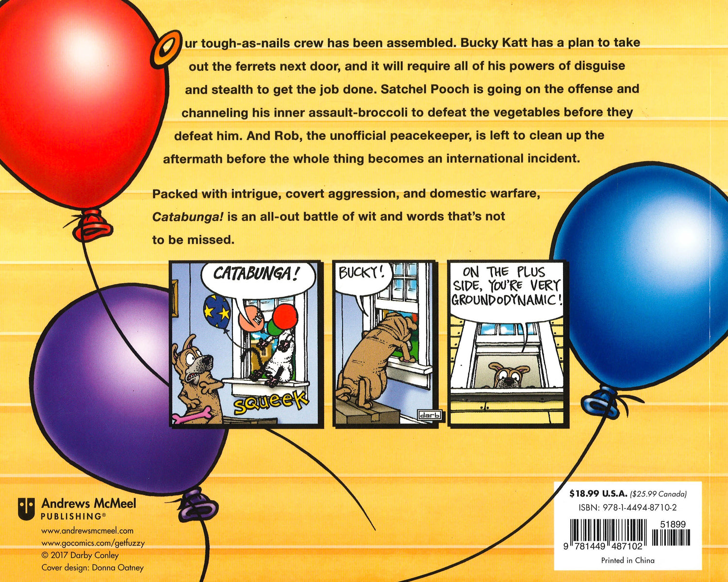 Our tough-as-nails crew has been assembled. Bucky Katt has a plan to take out the ferrets next door, and it will require all of his powers of disguise and stealth to get the job done. Satchel Pooch is going on the offense and channeling his inner assault-broccoli to defeat the vegetables before they defeat him. And Rob, the unofficial peacekeeper, is left to clean up the aftermath before the whole thing becomes an international incident.Packed with intrigue, covert aggression, and domestic warfare, Catabunga! is an all-out battle of wit and words that’s not to be missed.