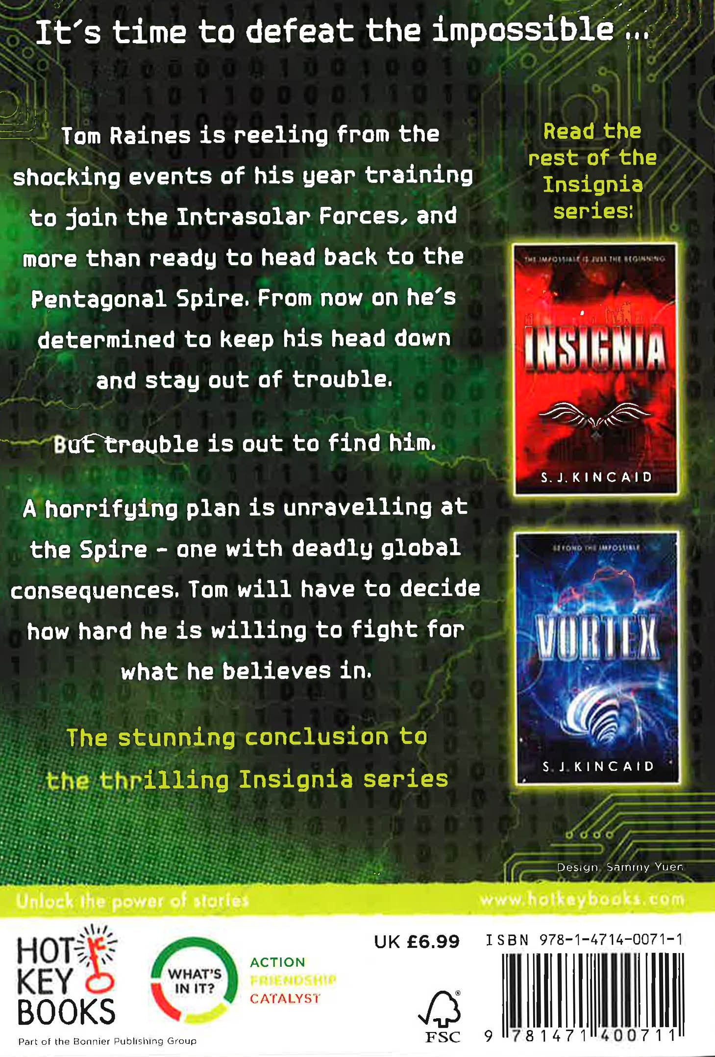 In this exhilarating, explosive and heart-rending conclusion to the INSIGNIA trilogy, CATALYST puts Tom and his intelligent, passionate and brave young friends through stunning tests, dangerous confrontations and into an impossible future they could never have predicted.