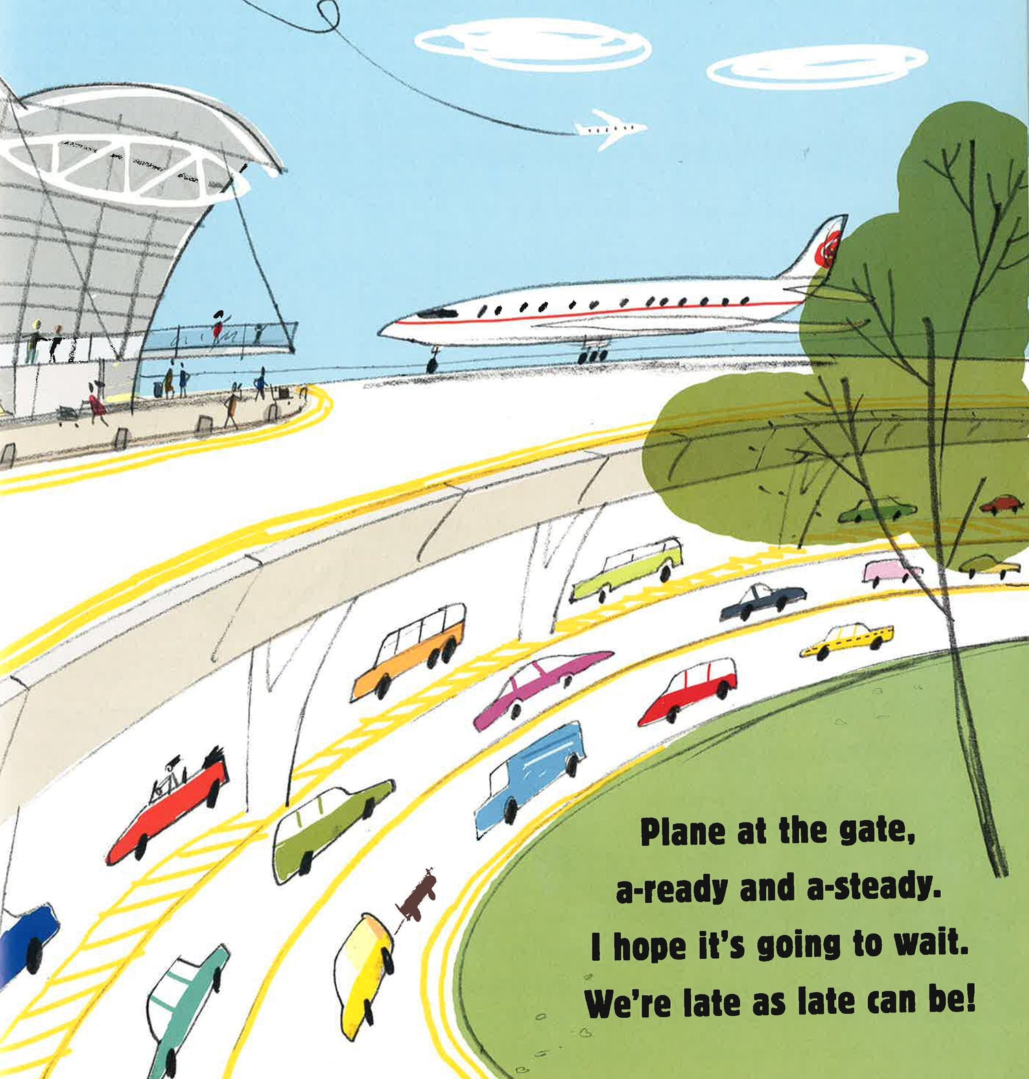 Sally Sutton's trademark rhyming text, with funky art by Sylvie Currin Korankova, makes boarding an aeroplane fun in this picture book. Rushing to the airport, what do I see? Plane at the gate, a-ready and a-steady. I hope it's going to wait. We're late as late can be!