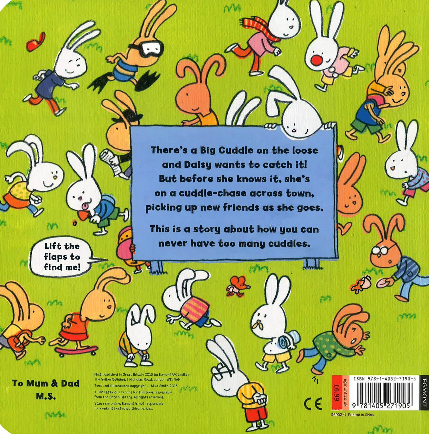 Where's Wally? meets Richard Scarry in this warm and reassuring story about how you can never have too many cuddles! One morning Daisy woke up feeling not quite right. "I need a cuddle", she sighed. Just then, there was a knock at the door. There's a Big Cuddle on the loose and Daisy wants to catch it! Lift the flaps for hidden treats as Daisy sets off on a cuddle-chase across town, picking up new friends as she goes. The perfect feel-good read for kids aged 3 and up from the author of the Hundred Decker Bus. Mike is an MA graduate in Children's Book Illustration from Cambridge School of Art, Anglia Ruskin University. In 2010 he won the Macmillan Prize for children's book illustration (for a story called Edward Hopper and the Carrot Crunch, having been a runner up the year before. His debut picture book is the delightful The Hundred Decker Bus was published in May 2013. He also draws for The Phoenix He lives in Cambridge with his partner, two sons and two dogs.