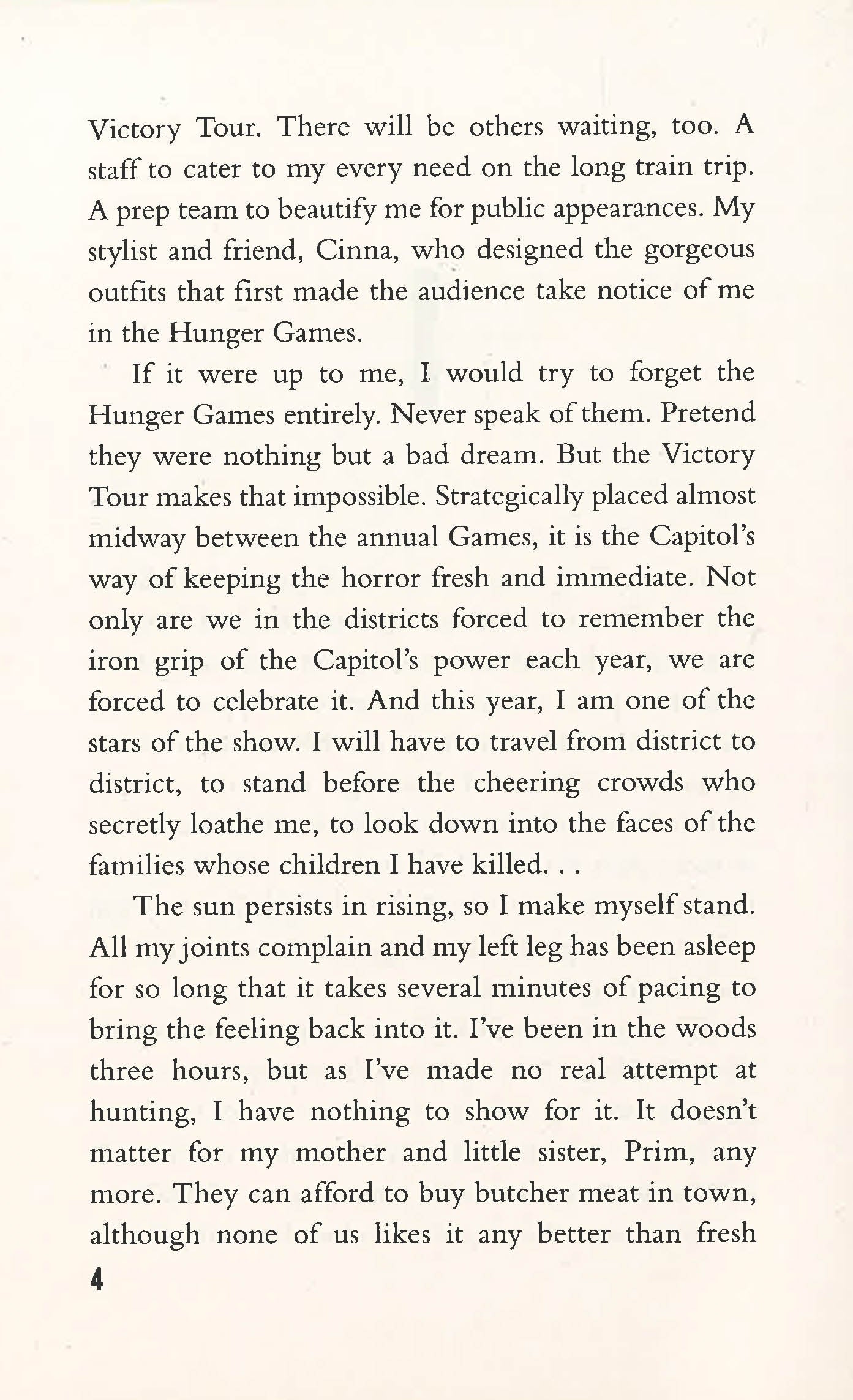 The second book in the ground-breaking HUNGER GAMES trilogy. After winning the brutal Hunger Games, Katniss and Peeta return to their district, hoping for a peaceful future. But their victory has caused rebellion to break out ...and the Capitol has decided that someone must pay. As Katniss and Peeta are forced to visit the districts on the Capitol's Victory Tour, the stakes are higher than ever. Unless they can convince the world that they are still lost in their love for each other, the consequences will be horrifying. Then comes the cruellest twist: the contestants for the next Hunger Games are announced, and Katniss and Peeta are forced into the arena once more.