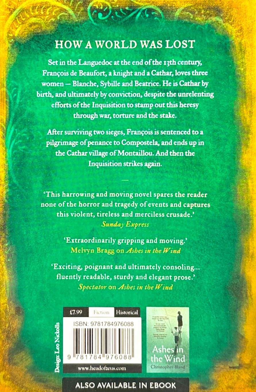 How a world was lost. In this compelling historical novel, set in the Languedoc at the end of the 13th century, François de Beaufort, a knight and a Cathar, loves three women – Blanche, Sybille and Beatrice. He is Cathar by birth, and ultimately by conviction, despite the unrelenting efforts of the Inquisition to stamp out this heresy through war, torture and the stake. After surviving two sieges François is sentenced to a pilgrimage of penance to Compostela, and ends up in the Cathar village of Montaillou. And then the Inquisition strikes again.