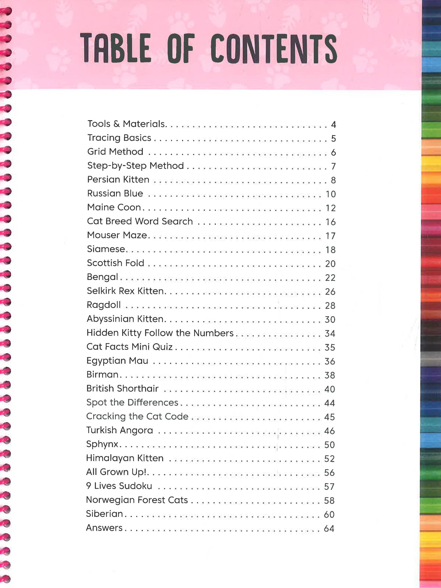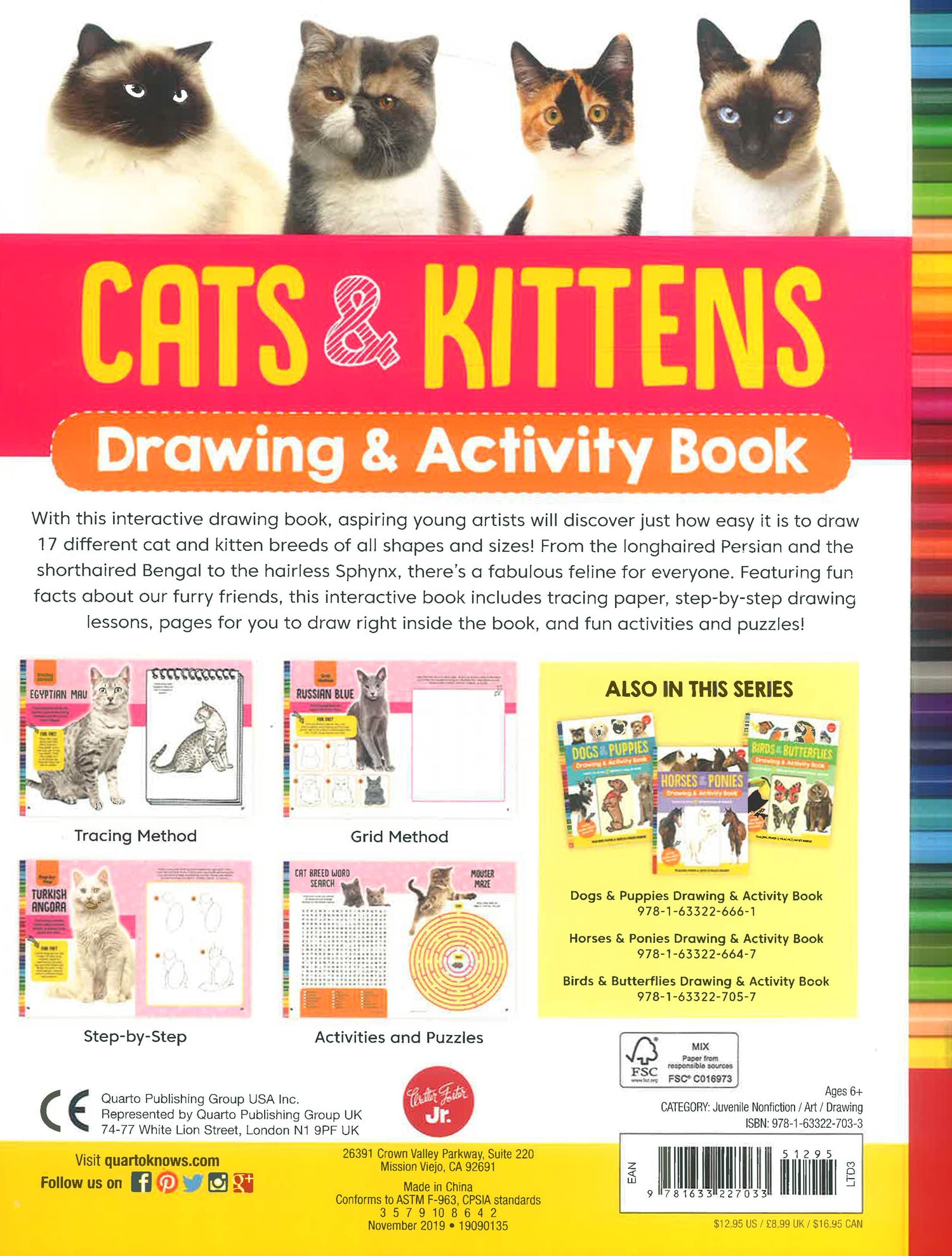 With the Cats & Kittens Drawing & Activity Book, learn how to draw 17 different breeds of cats and kittens by tracing, grid drawing, and step-by-step drawing!