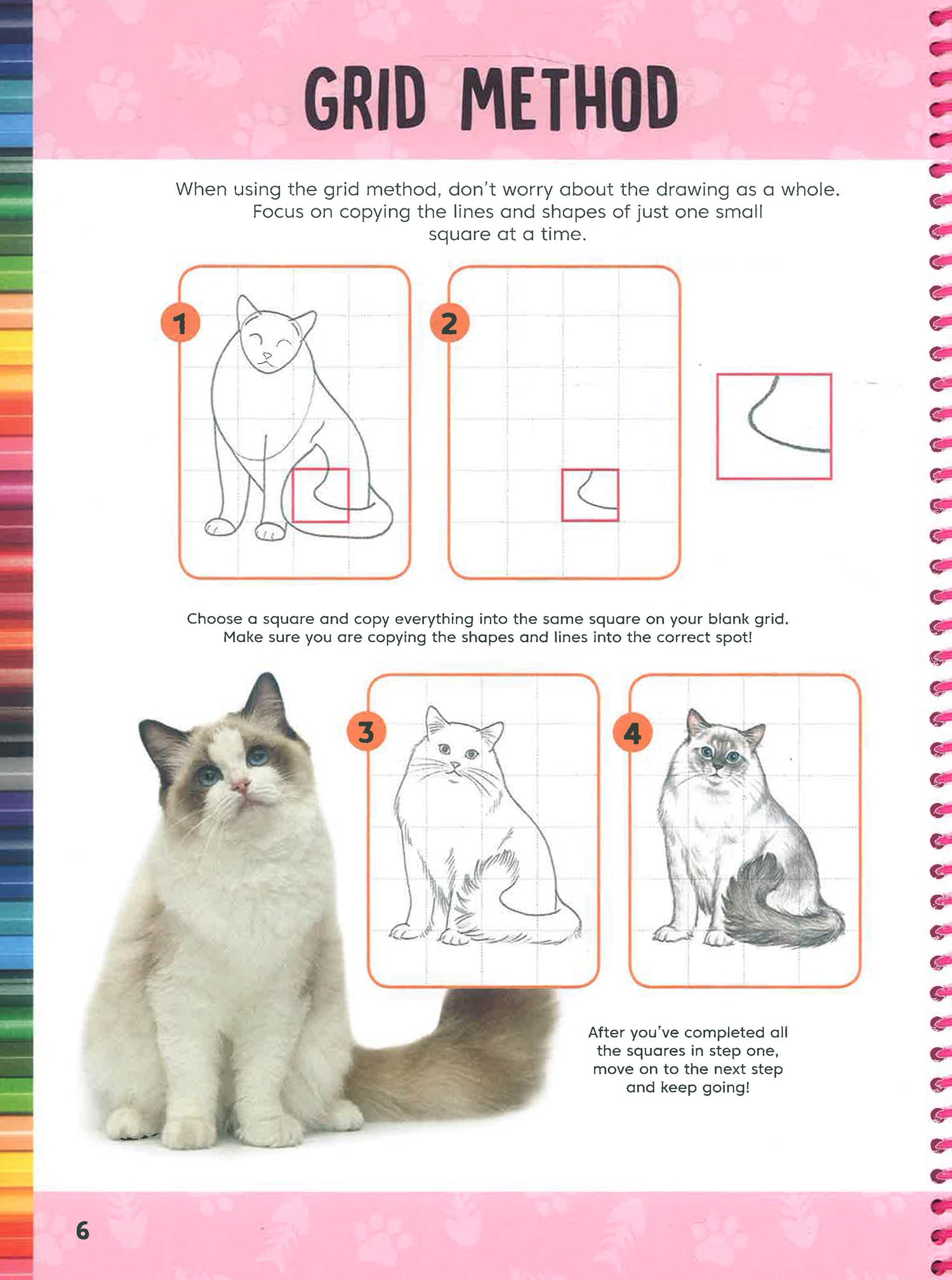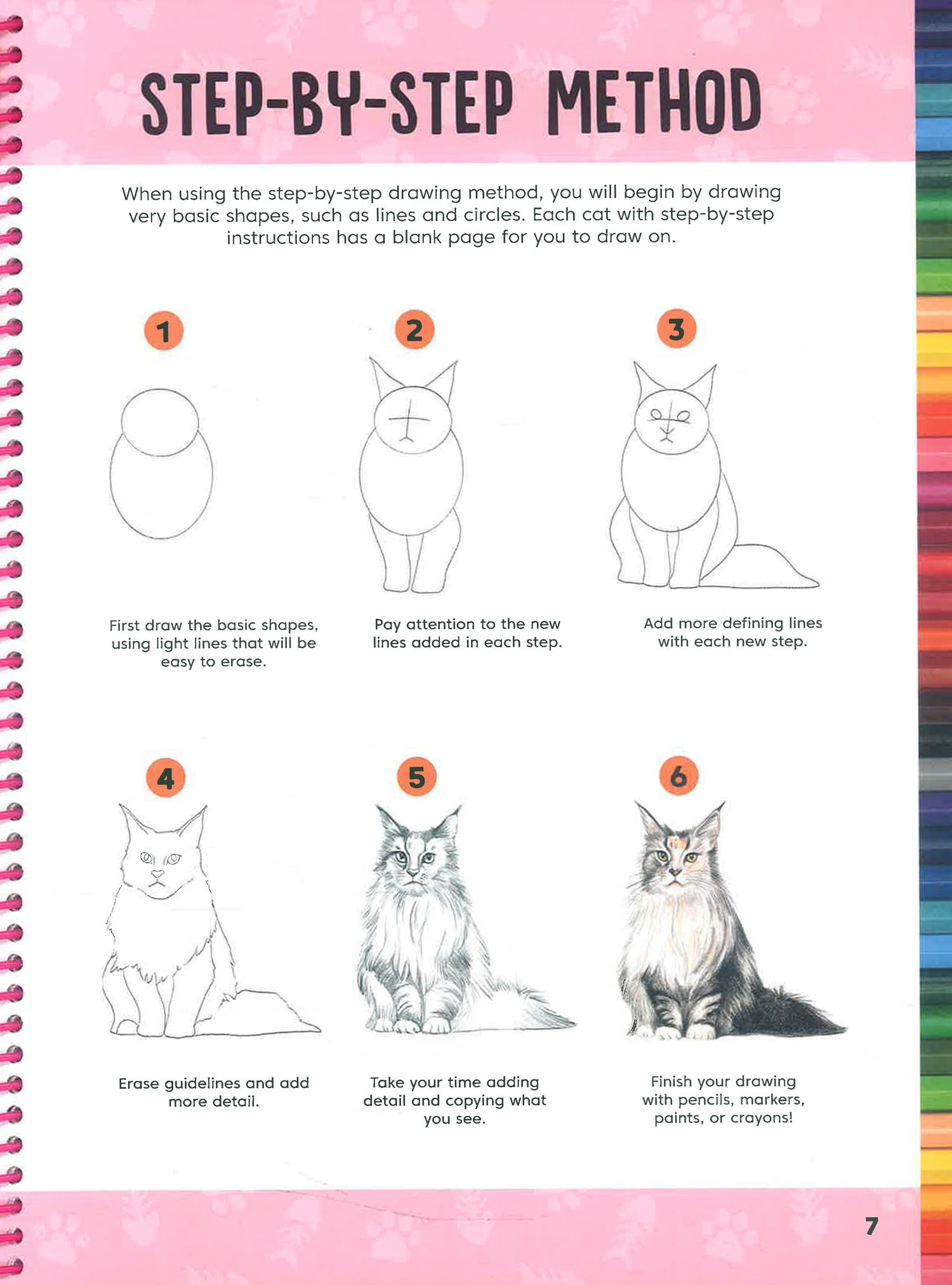 Inside, three different drawing methods are featured: tracing, grid drawing, and step-by-step drawing. Five tracing pages are included so you can trace. Then try the grid method―just copy the lines and shapes into the corresponding square on the blank practice grid provided. You will also learn the same step-by-step method used by professional artists: the basic shapes method. To draw cats just like the pros do, just follow the illustrations that show how each step builds upon the last to create a finished piece of artwork. Look closely at the new lines in each step and draw the cat on the practice page provided after each basic shapes project. Find the technique that works the best for you, and draw your favorite cats and kittens over and over again!