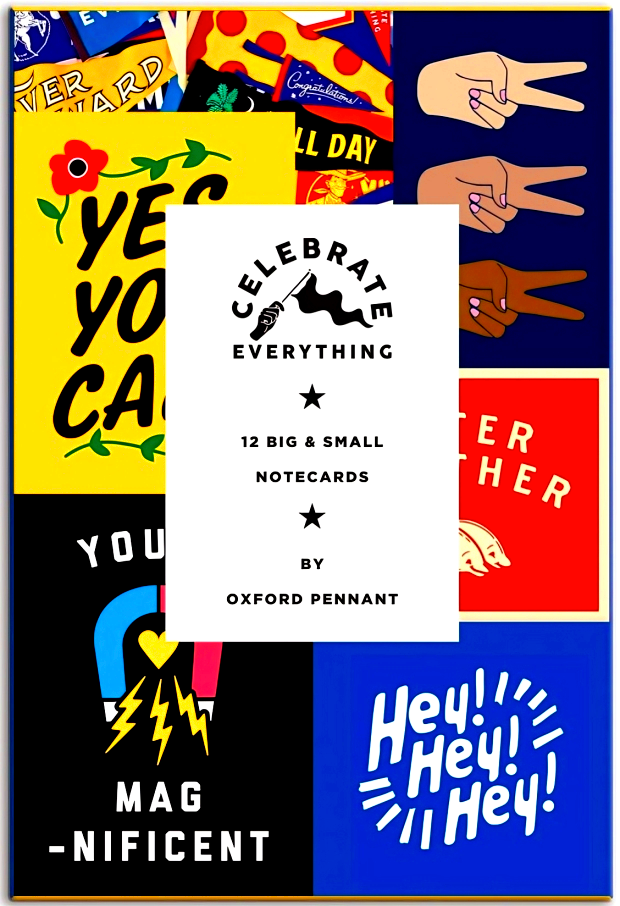 The Celebrate Everything Notecard Set from Galison contains a mashup of folded and flat card sizes to help you send the perfect message. Colorful art mingled with positive messages make this greeting card set ideal for all occasions. There are 6 different designs with messages including: “You are Magnificent,” “Yes You Can,” “Better Together,” and more. There are 12 envelopes with printed flaps included within this notecard set.
