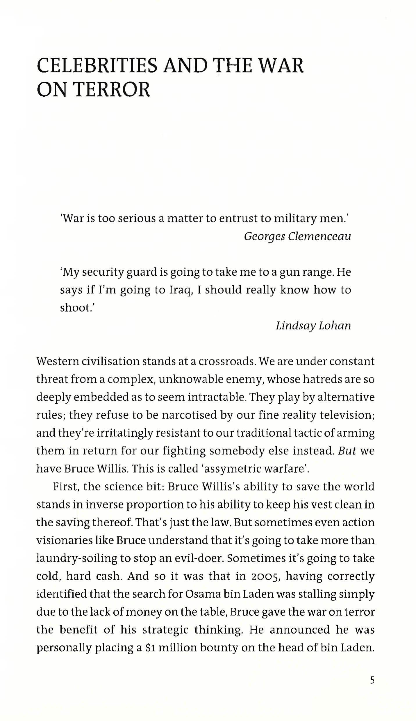 Celebrity is a coruscating, hilarious, thinking person's guide to a world in which it is considered reasonable that Angelina Jolie advises on the Iraqi reconstruction effort, Charlie Sheen analyses 9/11, and in which Jude Law's views on the Taliban are taken seriously. Anatomising every aspect of our crazed world, Celebrity tackles the big topics, including 'Celebrity Activism -- when celebrities care', 'Celebrities and the Middle East: a troubled region's brightest hope?', and 'Celebrity Religions: who do the worshipped worship?'.