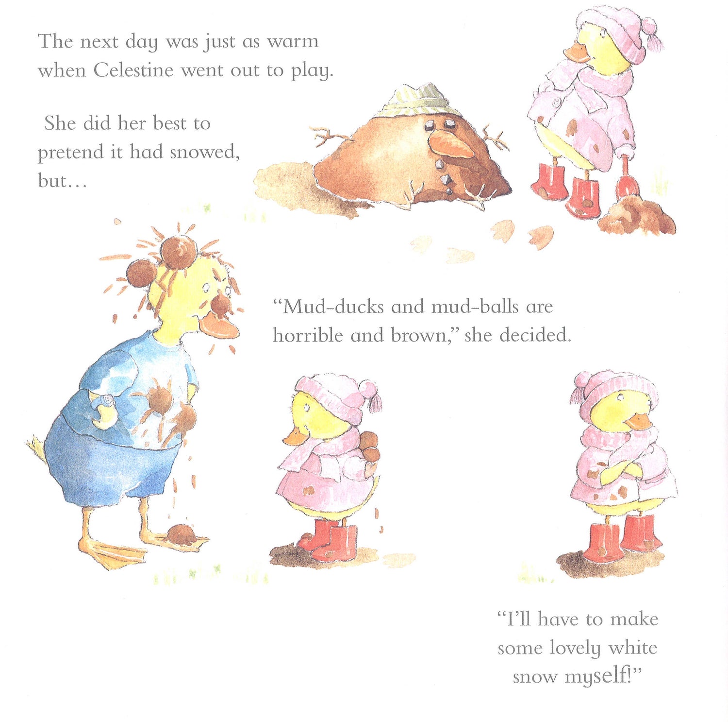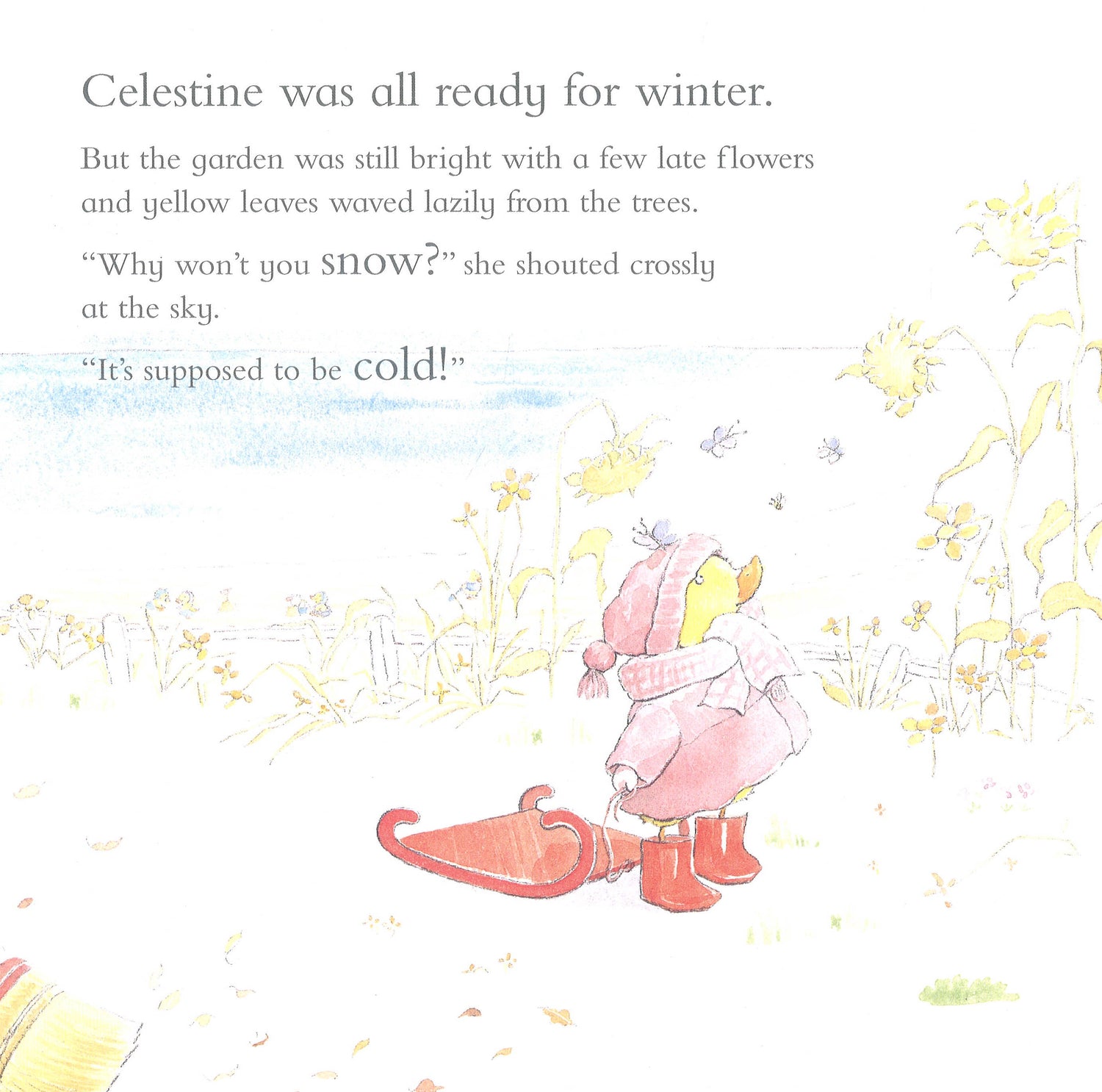 Re-released in paperback, this title features confident little duck heroine, Celestine, who is bored of waiting for the snow to arrive one winter. She decides to make her own, but cotton wool and paper just aren't the same. As she trudges back to her house, who should be behind her but a host of baby penguins, set adrift from Antarctica! After attempts to recreate the chill of the South Pole fail, it's up to Celestine to find a way to send the penguins home.