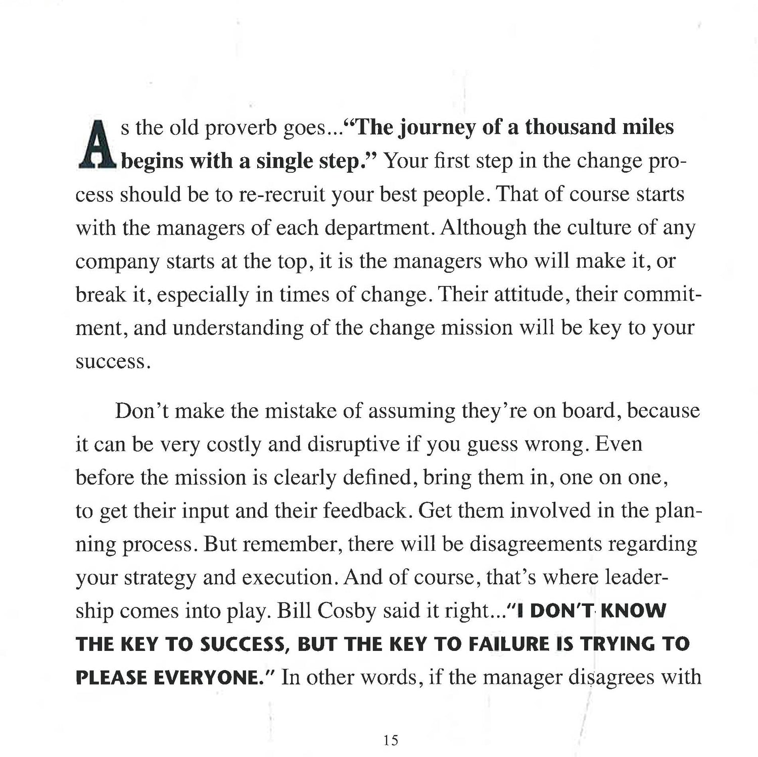 Change is a natural part of life, but that doesn't make it any less frightening. Encourage your team to embrace positive change with this little book. Filled with real life stories from top companies who dared to say "No" to business as usual, and ultimately succeeded. Shake up the status quo in your organization. This little book will help you stand out from the competition and develop new ways of thinking about how to succeed in today's economic times. Makes a unique gift .
