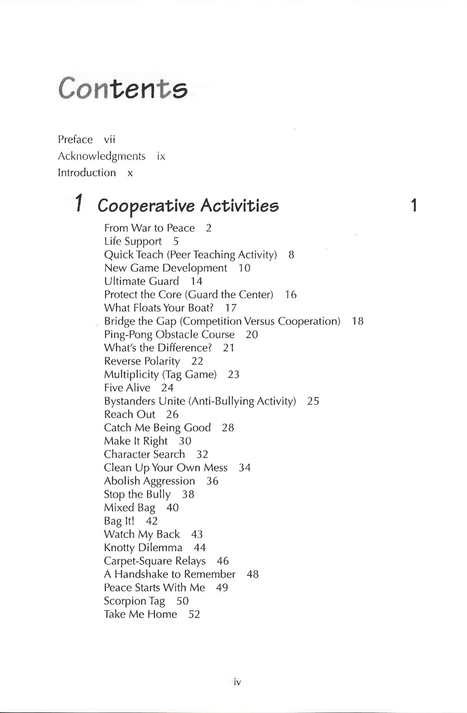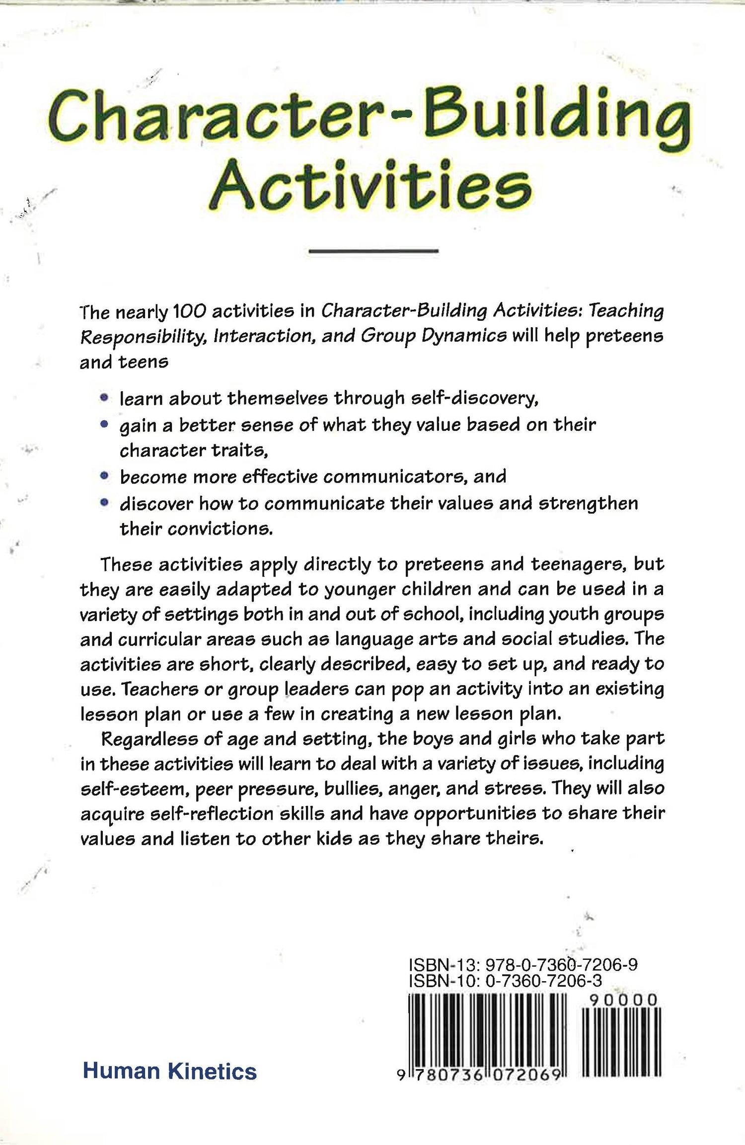 This book presents a unique opportunity for students to learn about themselves through self discovery. There are nearly 100 lessons focusing on individual values and the contributions young people can make to others. Self responsibility, social interaction and group dynamics are interwoven throughout the activities. Self reflection is an important part of the activities in this book. Young people need opportunities to share and hear each other tell their stories to help promote a healthy community. This book was written primarily for middle school and secondary school students, but most of the activities in the book can easily be adapted to younger audiences and used in various curricular areas such as, language, arts and social studies.The book is divided into four chapters. In Chapter 1, the co-operative activity section, activities are presented that require a group effort to succeed. In Chapter 2, the self-awareness section, the emphasis is on personal attributes and awareness. In Chapter 3, the instructional strategies section, some material is teacher guided, while others are student directed. Lastly, in Chapter 4, reflection activities, students are given opportunities to communicate their values and strengthen their convictions.