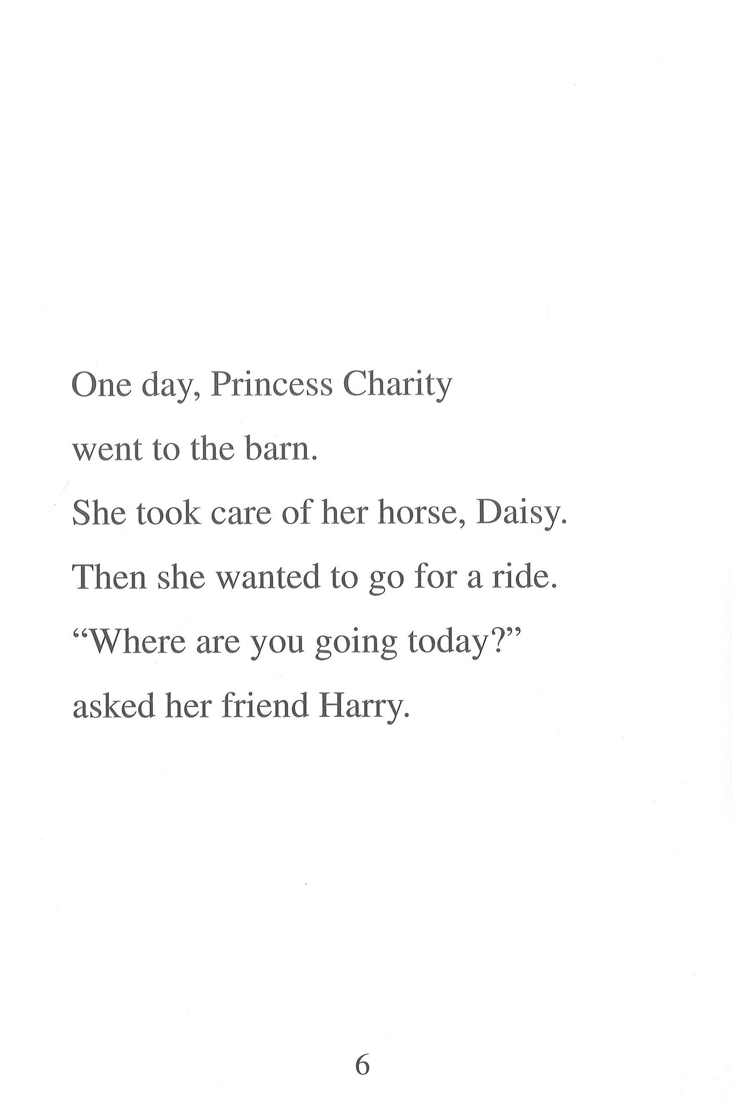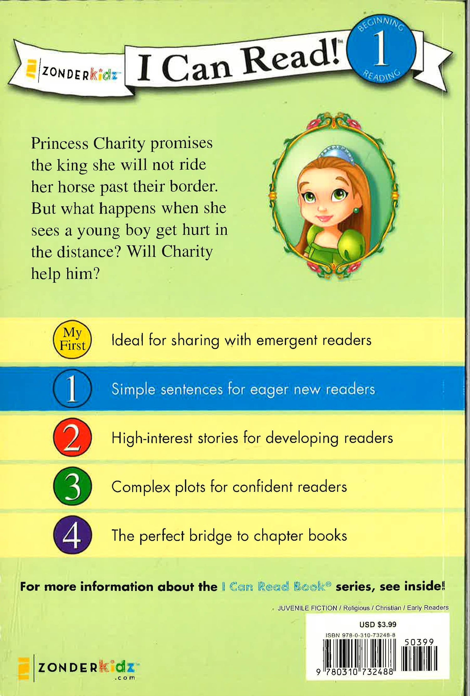 Princess Charity loves to ride her horse Daisy across the kingdom and normally feels free to go everywhere. But father has issued an order - to stay away from the neighbor's border. Charity wants to obey her father, the king, but when she sees people go by an injured young boy without stopping to help, she must make a decision . . . should she obey her father or go to help the boy in need? Based on the parable of the Good Samaritan, this level one I Can Read brings a lesson of love to life for little girls.