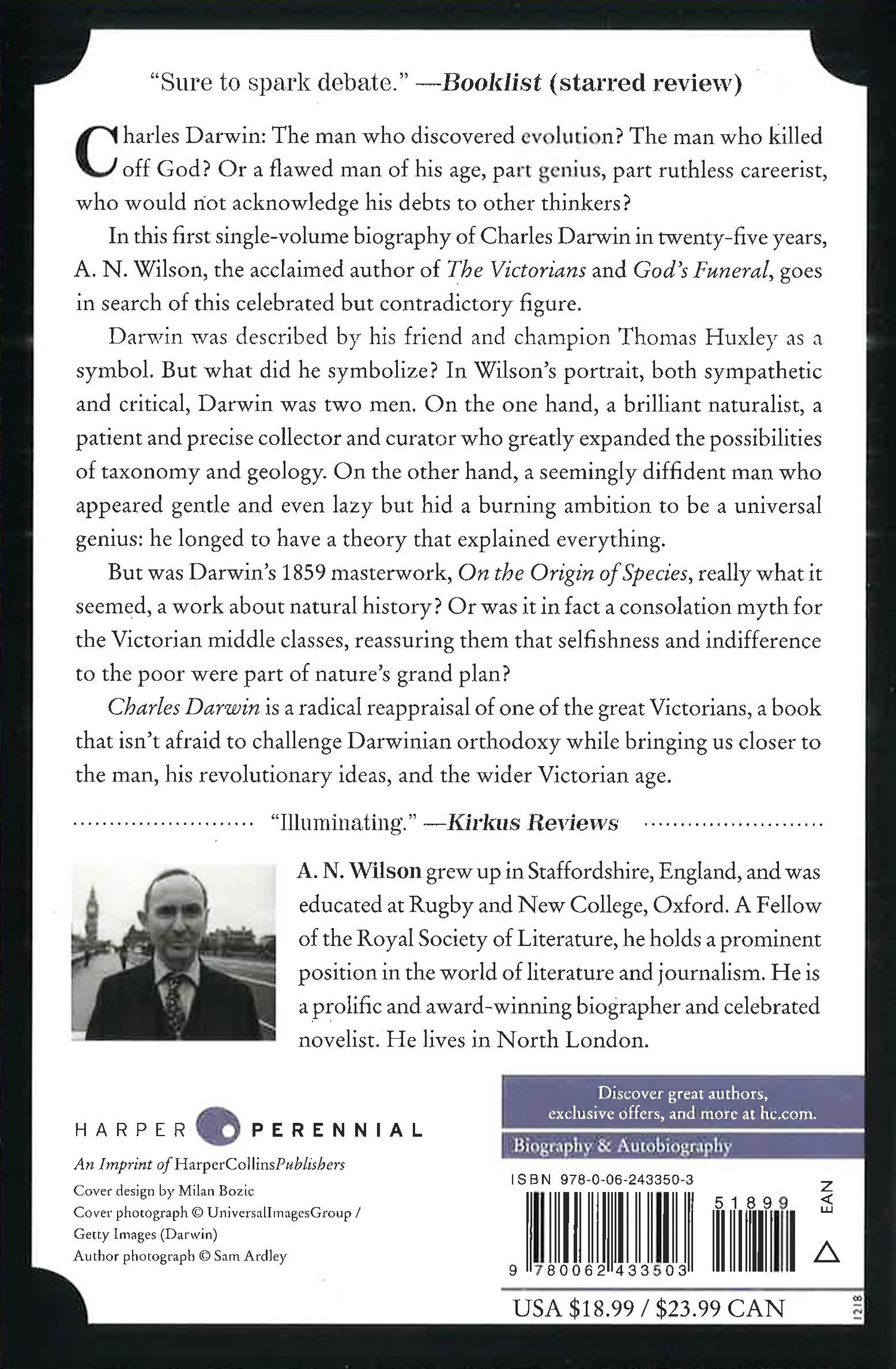 With the publication of On the Origin of Species, Charles Darwin--hailed as the man who discovered evolution--was propelled into the pantheon of great scientific thinkers, alongside Galileo, Copernicus, and Newton. Eminent writer A. N. Wilson challenges this long-held assumption. Contextualizing Darwin and his ideas, he offers a groundbreaking critical look at this revered figure in modern science.